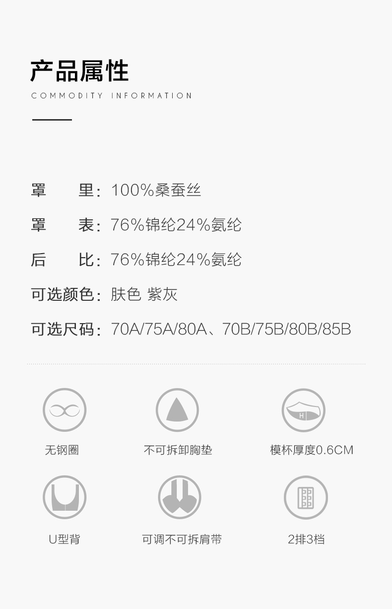 金三塔新品真丝透气上托真丝文胸桑蚕丝无钢圈聚拢无痕内衣女 NZFBA311