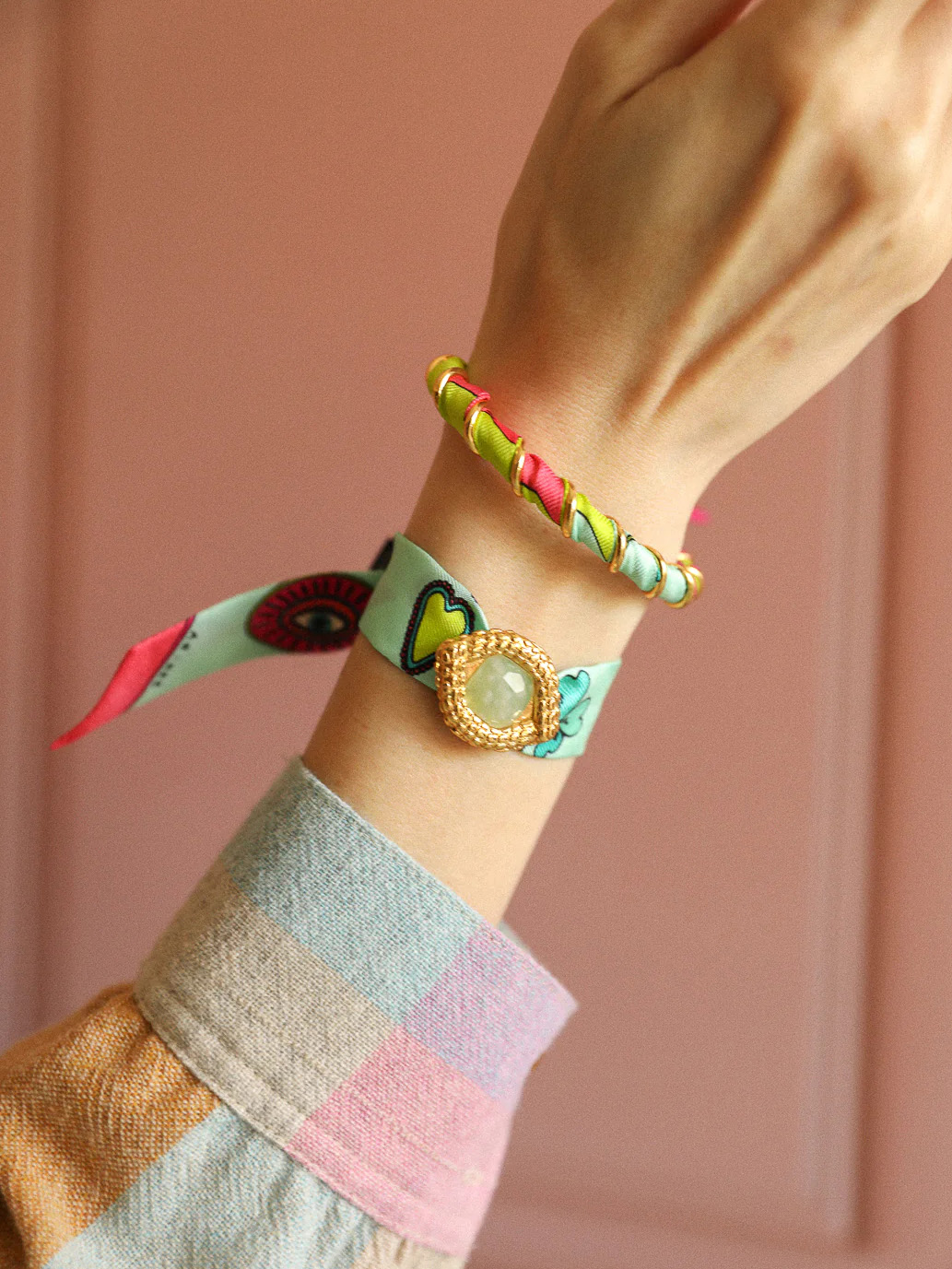 订购14周到|AN-NEE-OEILDECAÏMAN-JadeOil-薄荷绿 幸运予你 2cm 丝巾装饰扣手镯[法国设计师]