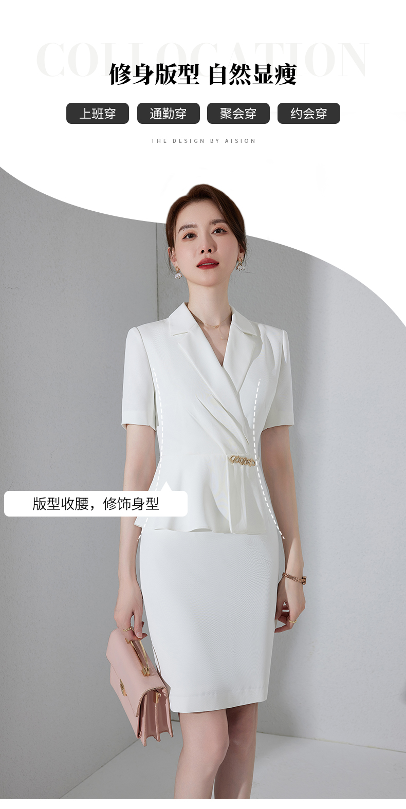 职业连衣裙女夏季高级感假两件裙子气质珠宝店酒店前台接待工作服