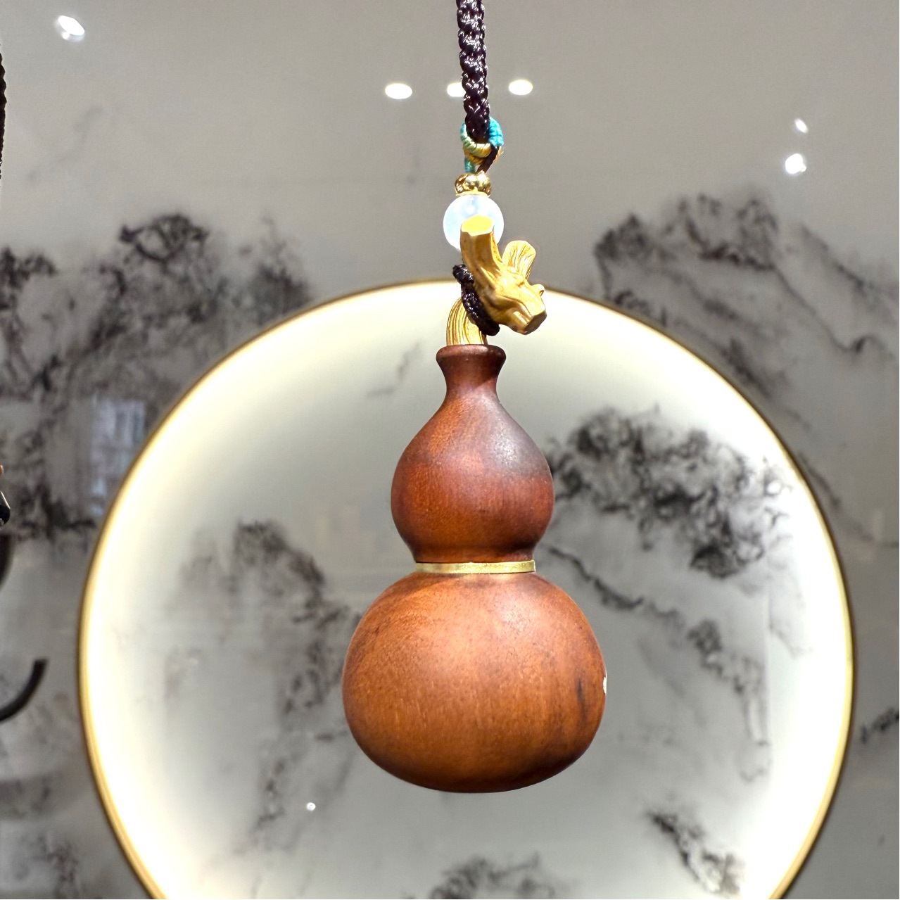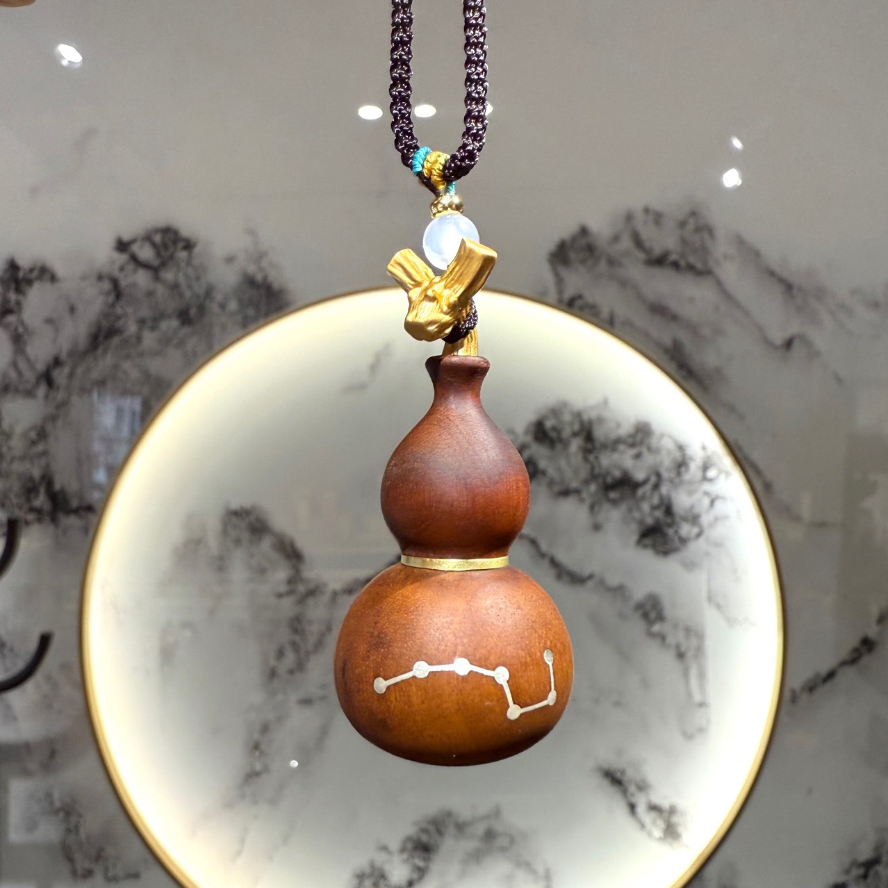【灵机生活馆】雷击枣木葫芦吊坠 镶嵌银七星葫芦饰品摆件吊坠