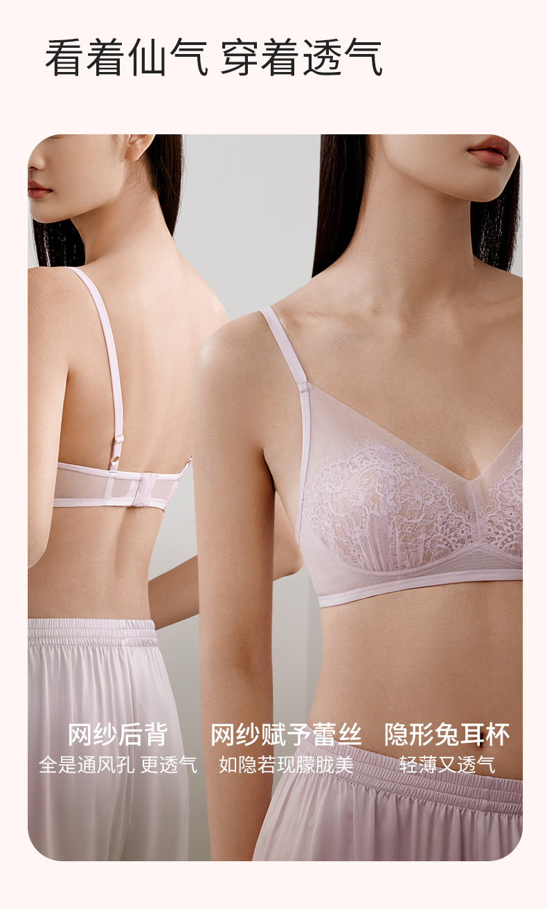金三塔桑蚕丝内里性感蕾丝无钢圈文胸透气舒适亲肤内衣女春夏新品(限价款) NZFFB301