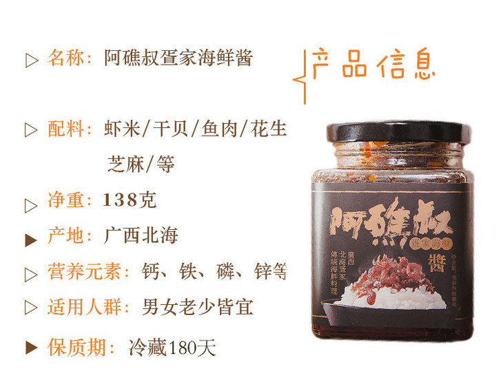 【两瓶组合】卖断货的北海XO海鲜酱138g*2瓶 整罐的海鲜超满足