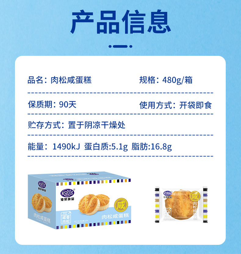 【肉松咸蛋糕480g 】松软咸甜 绵绵肉松 百吃不厌选定你 港荣[随心配1+1]XR