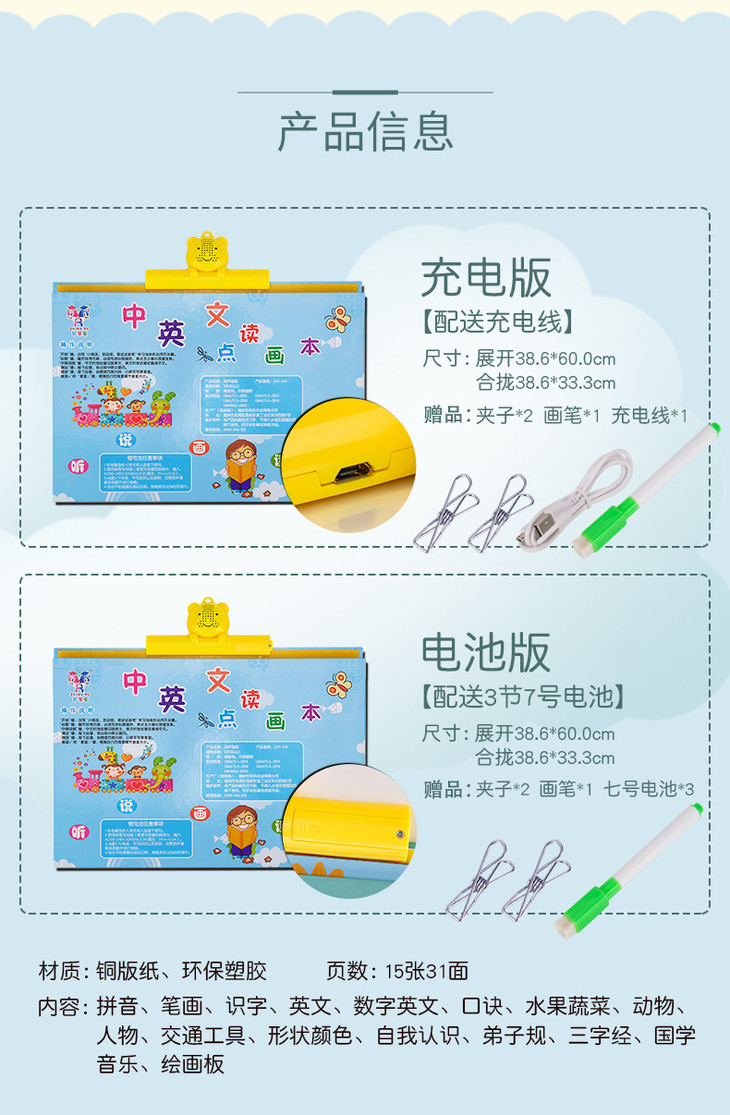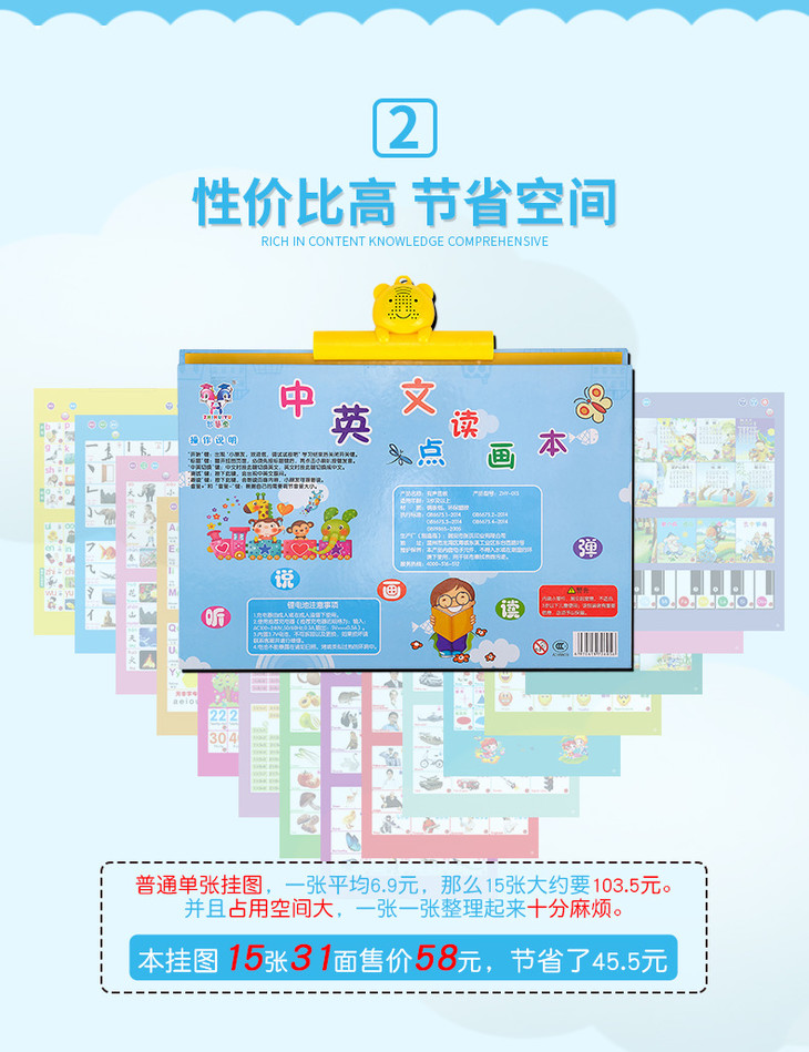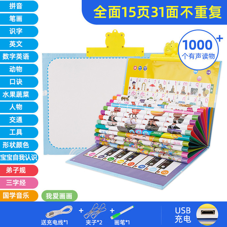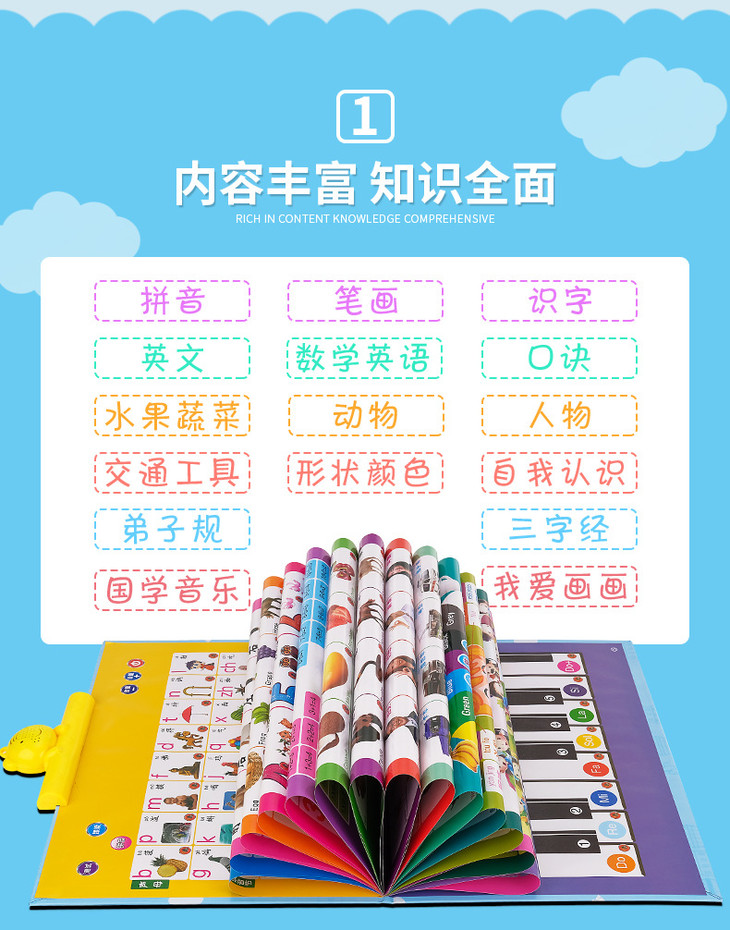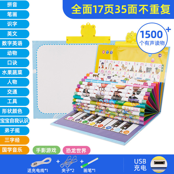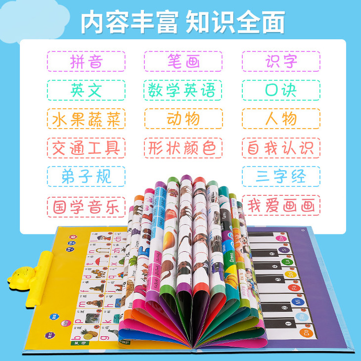 【儿童玩具】*早教有声读物挂本点读发声书启蒙益智拼音宝宝认知挂图充电款玩具