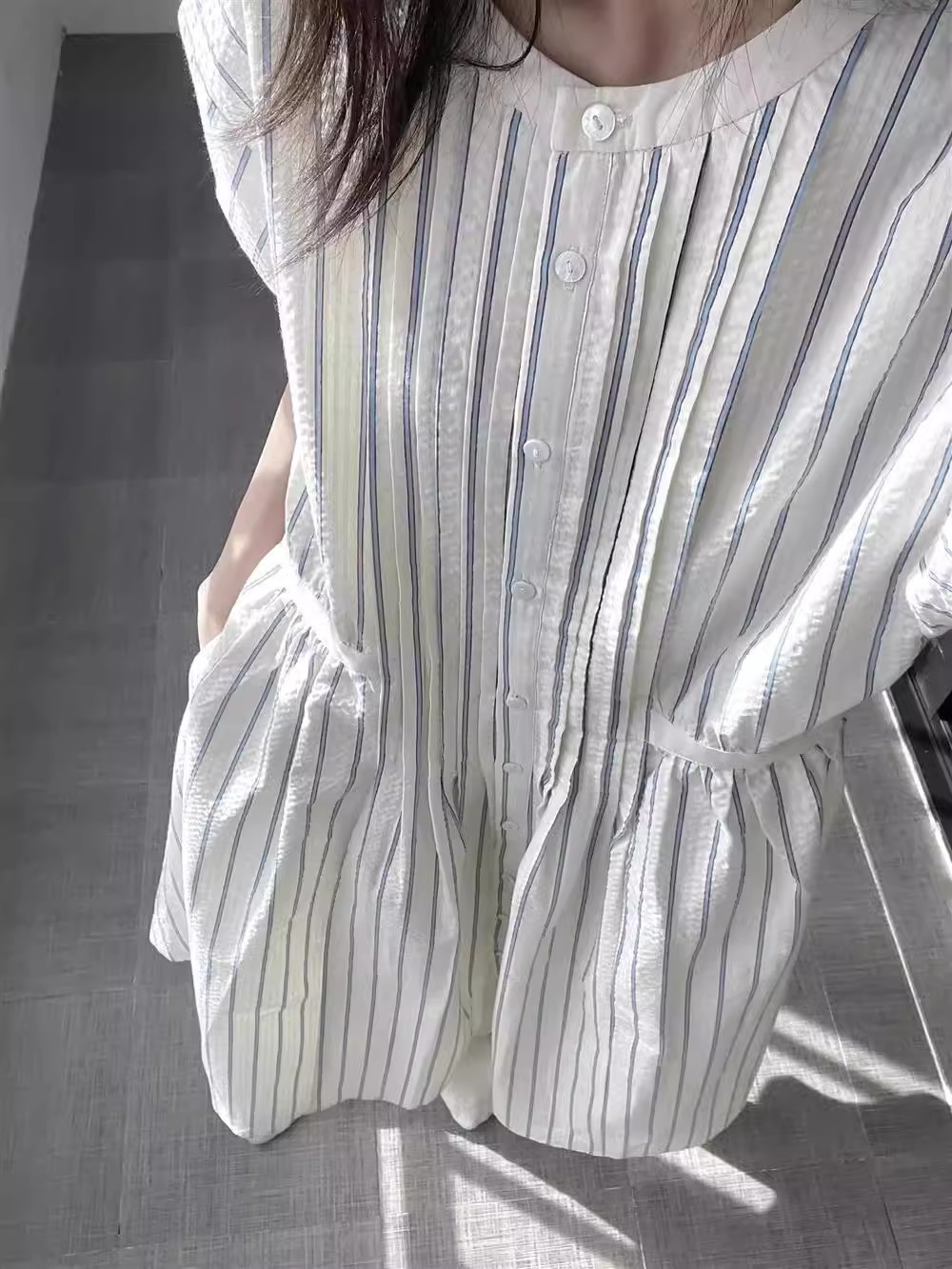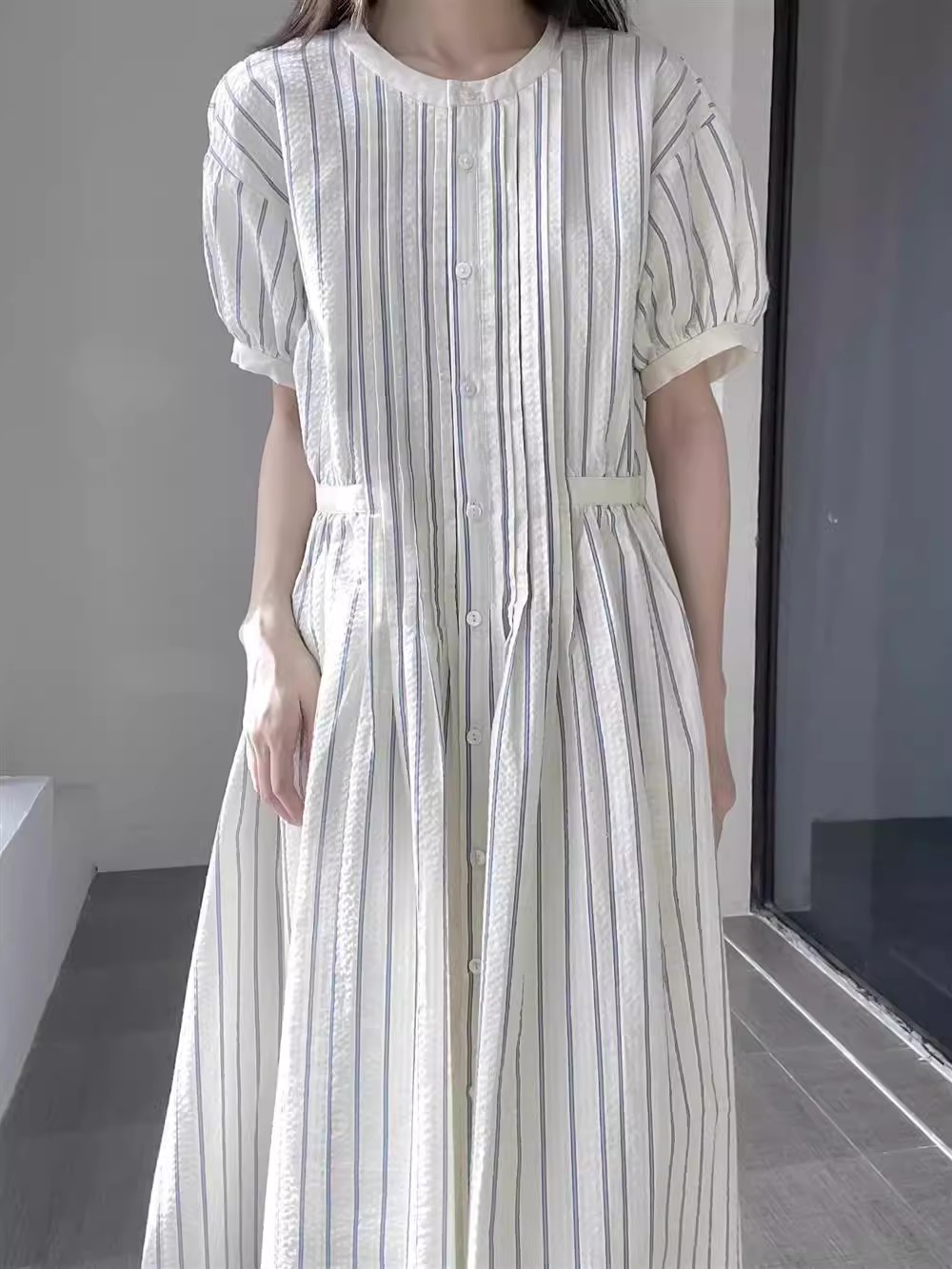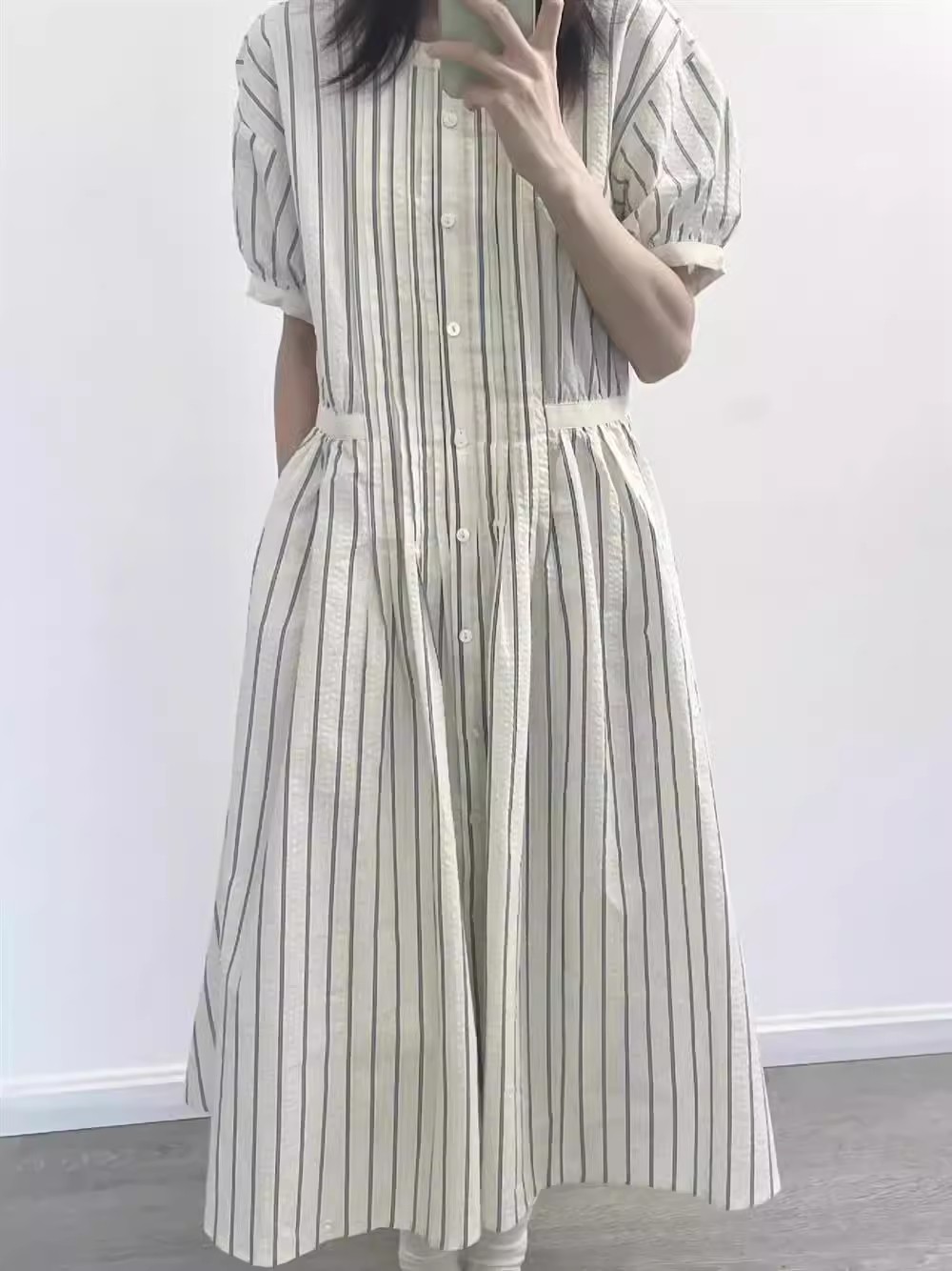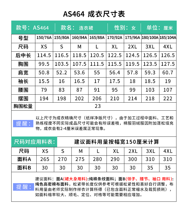 裁缝学苑AS464棉麻亚麻泡泡袖连衣裙纸样女装新款法式排扣衬衫裙子样板