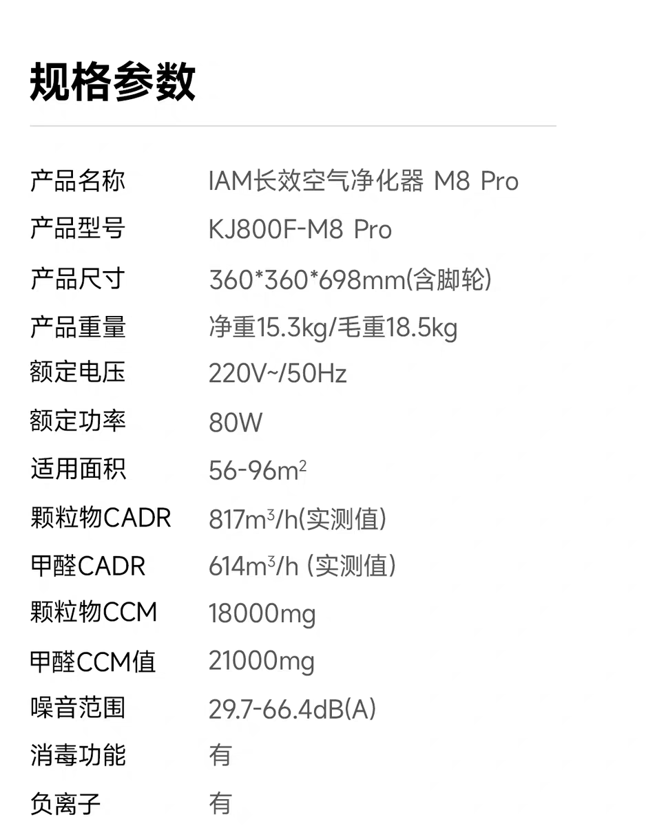 【云粉节】10楼 IAM KJ800F-M800 PRO 空气净化器 吊牌价6499元 活动价3499元