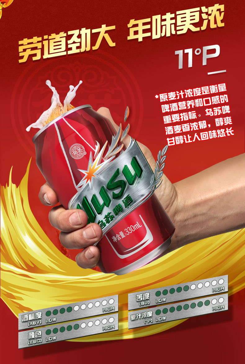 【爆款热卖6罐】新疆夺命大乌苏啤酒500ml啤酒