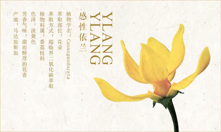 依兰 枕草子为【般若】选择了超临界二氧化碳萃取的依兰精油,超临界算是一种相当完美的萃取法,器材昂贵,以这种方式萃取的精油比其他贵出许多,但精油会更接近原植物形态,所以也是保证精油质量的最佳选择。依兰中含有的芳香脂,是夜晚放松的理想选择,令人随时觉得轻松自在。