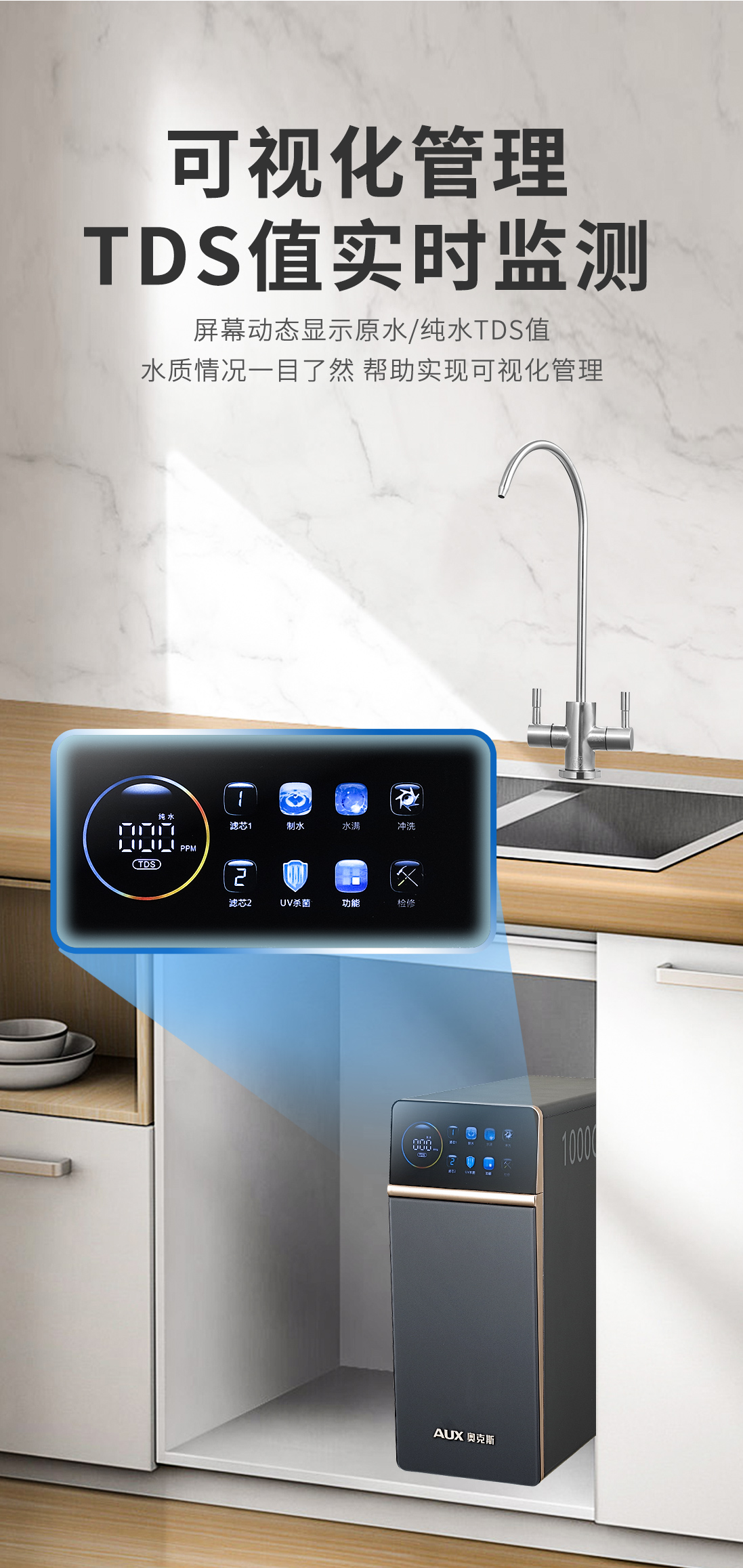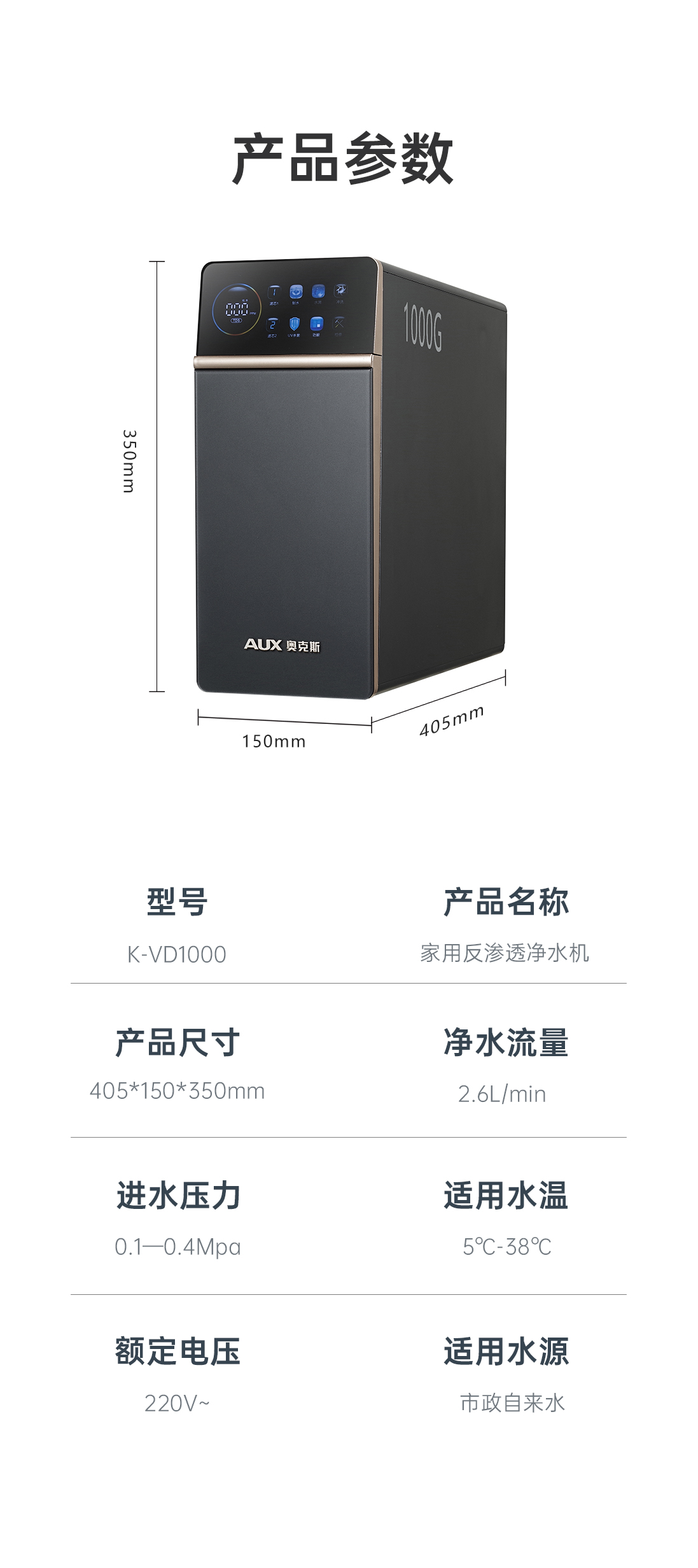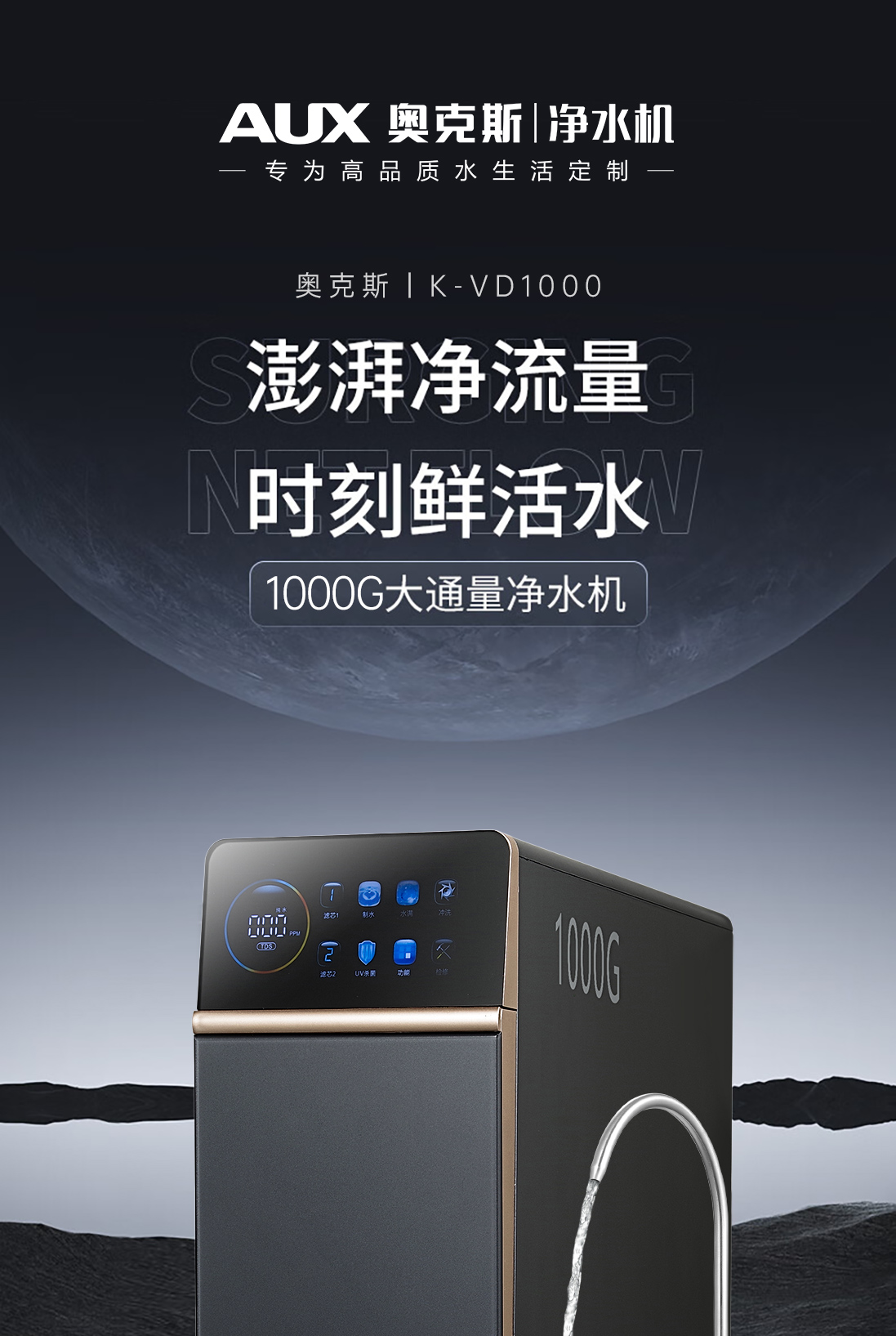 奥克斯净水器新品VD1000/1000G双出水 大通量满足不同水质 带TDS值显示