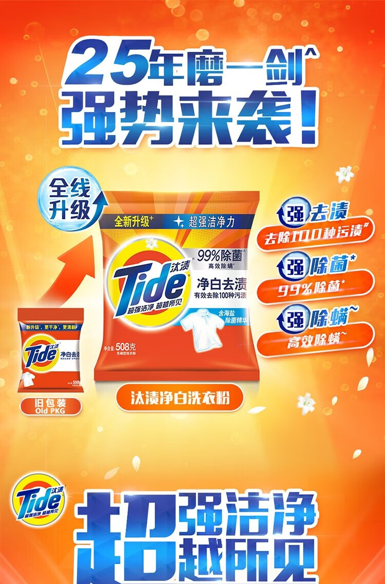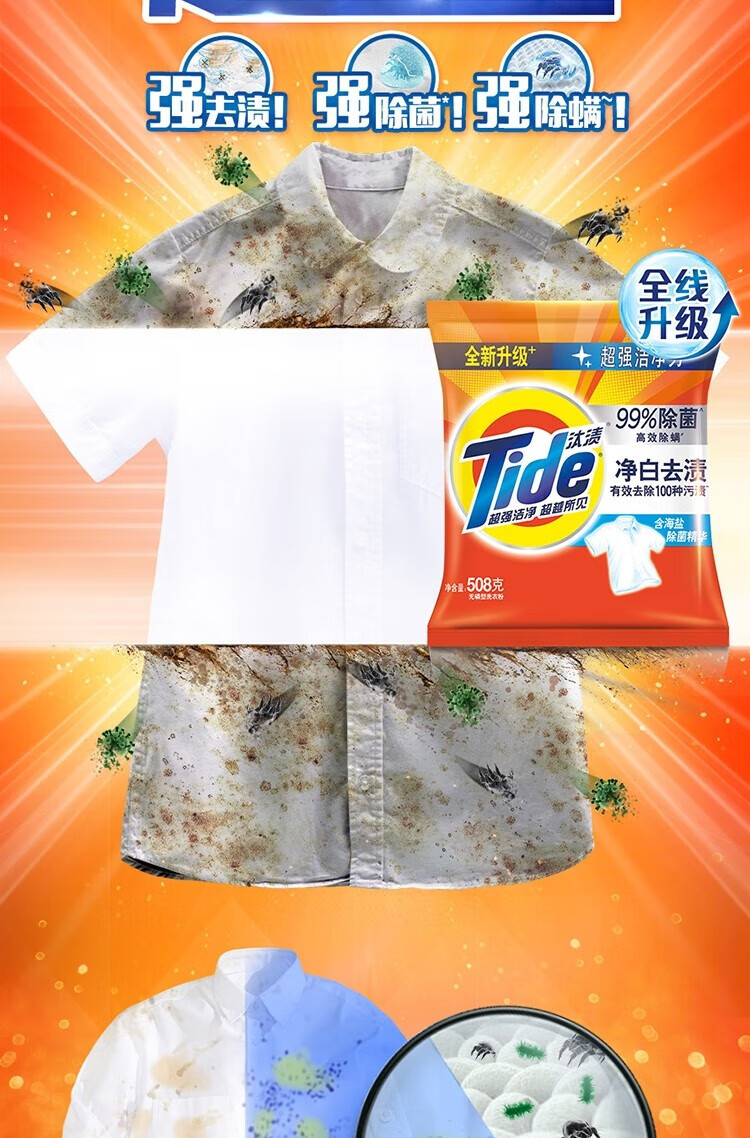 汰渍洗衣粉净白去渍去油污洁净无磷自然清香袋装方便装经典装508g/袋