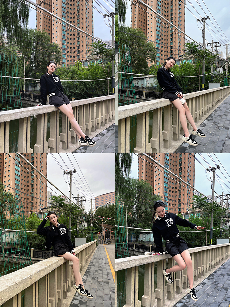 DUO智仙生 女高运动型录灰色宽松Polo卫衣和蕾丝百褶裙