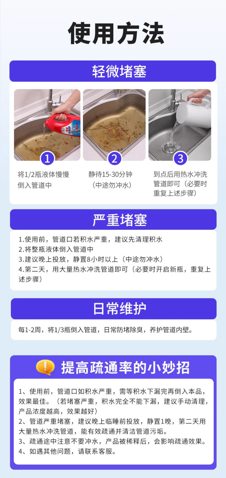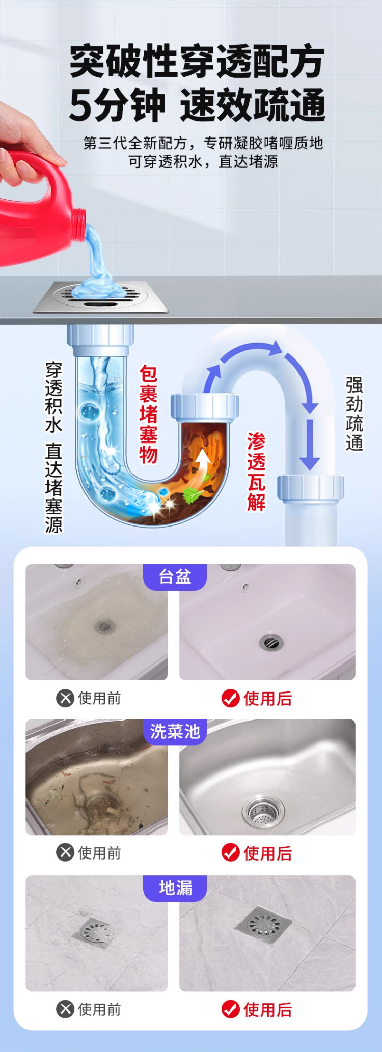 【秒杀❗️9.9抢500ml🔥管道疏通剂】快速疏通 直击堵塞 不伤管道!通下水道强力溶解厕所马桶厨房油污专用堵塞疏通液神器