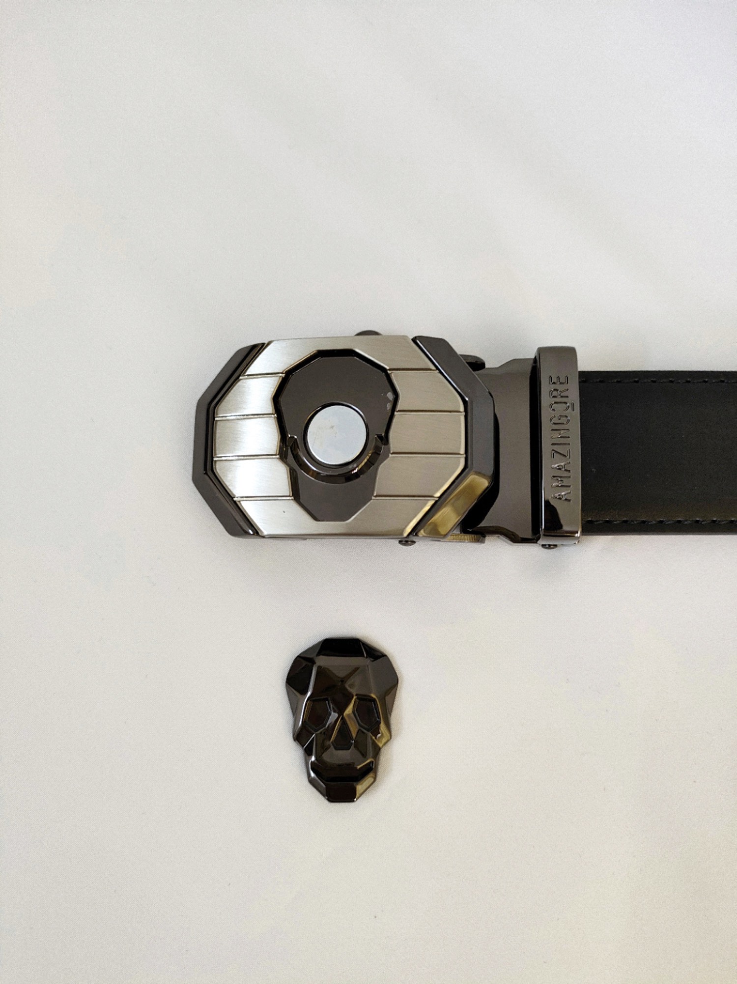 Amazing情侣皮带男款 卡扣 长度可裁剪骷髅头可取耐磨防刮A125118
