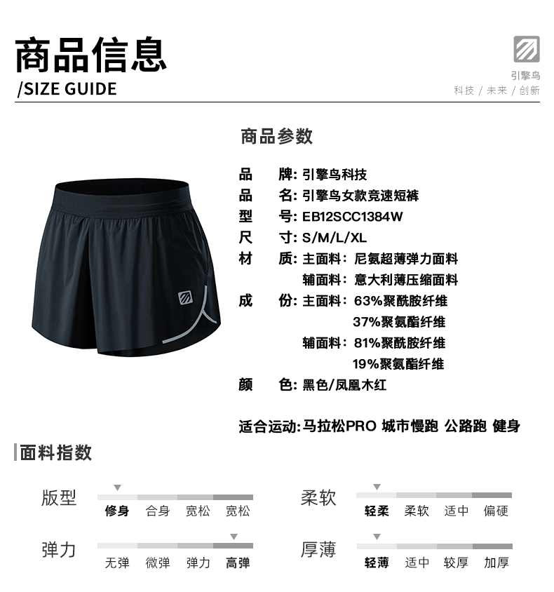 引擎鸟竞速短裤女款马拉松运动跑步训练速干裤