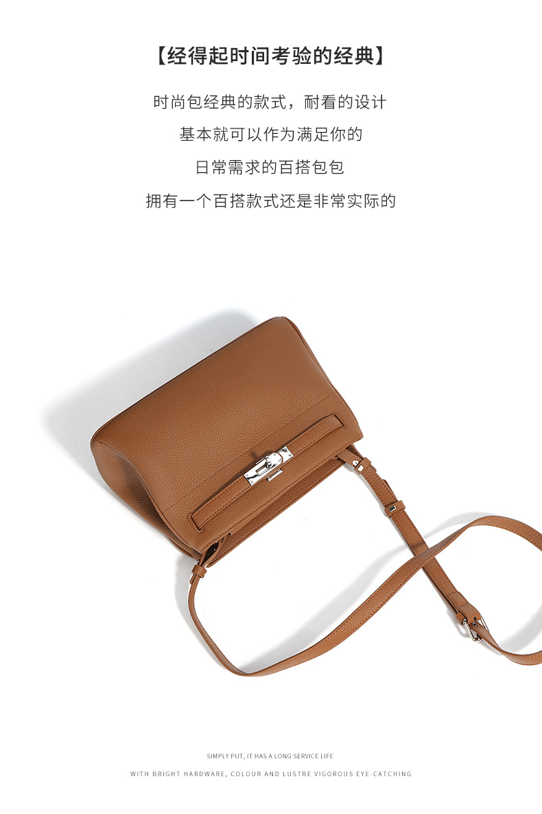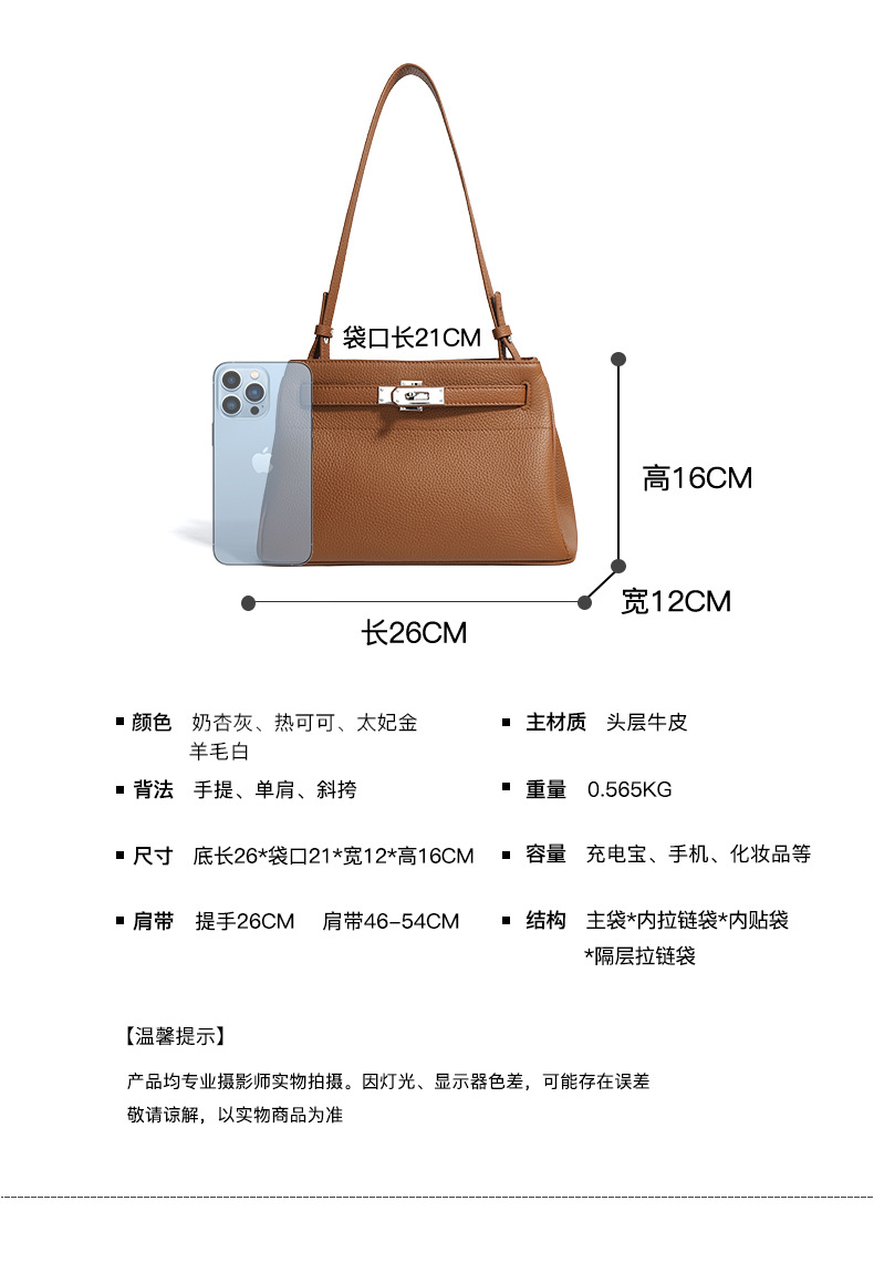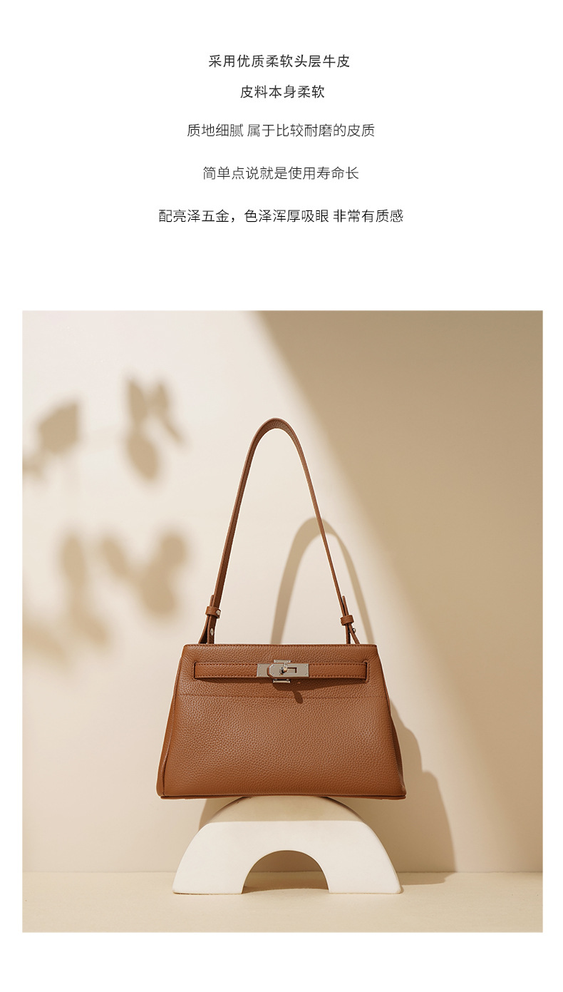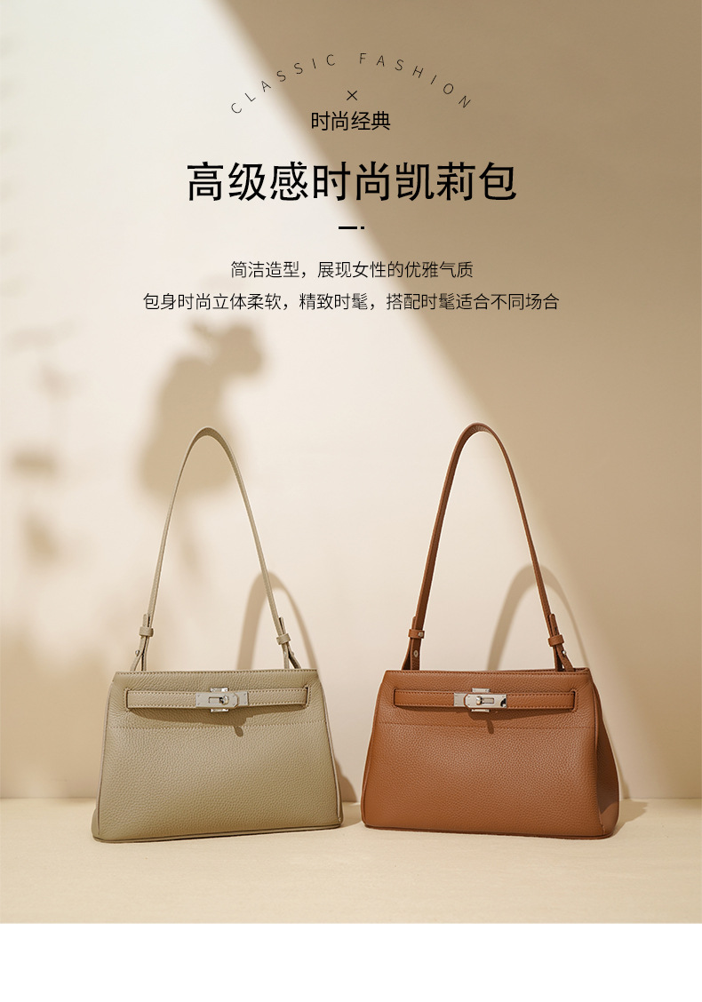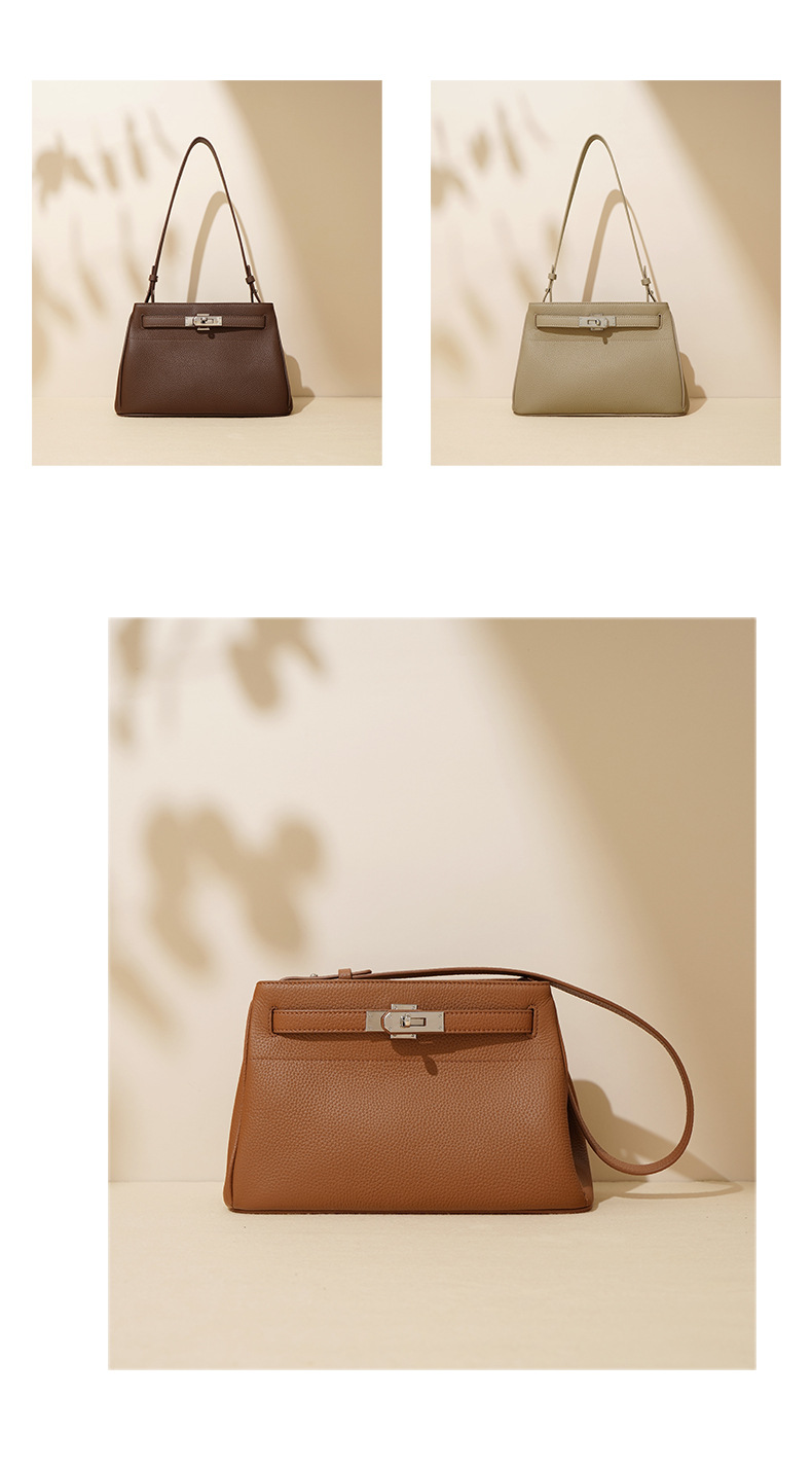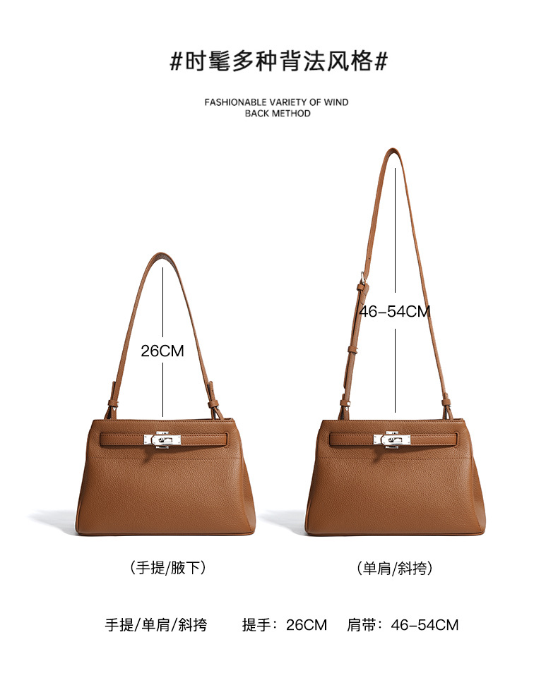 【预售3天】新款高级感时尚凯莉包复古锁扣腋下包通勤手提斜挎包M7877A