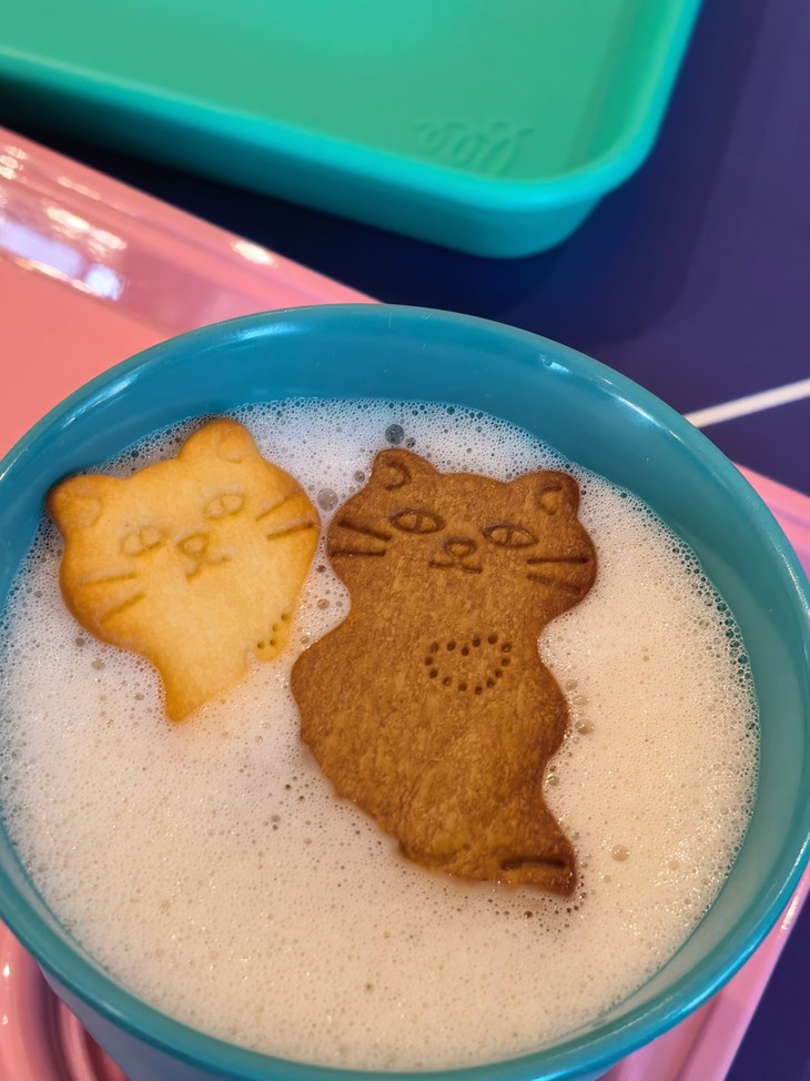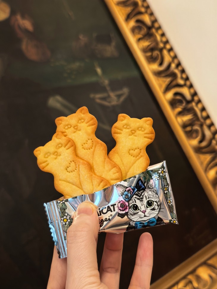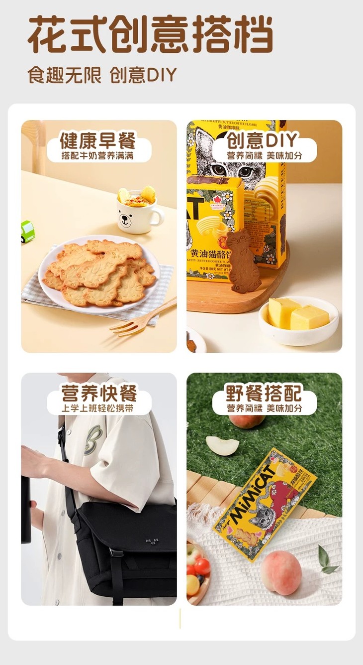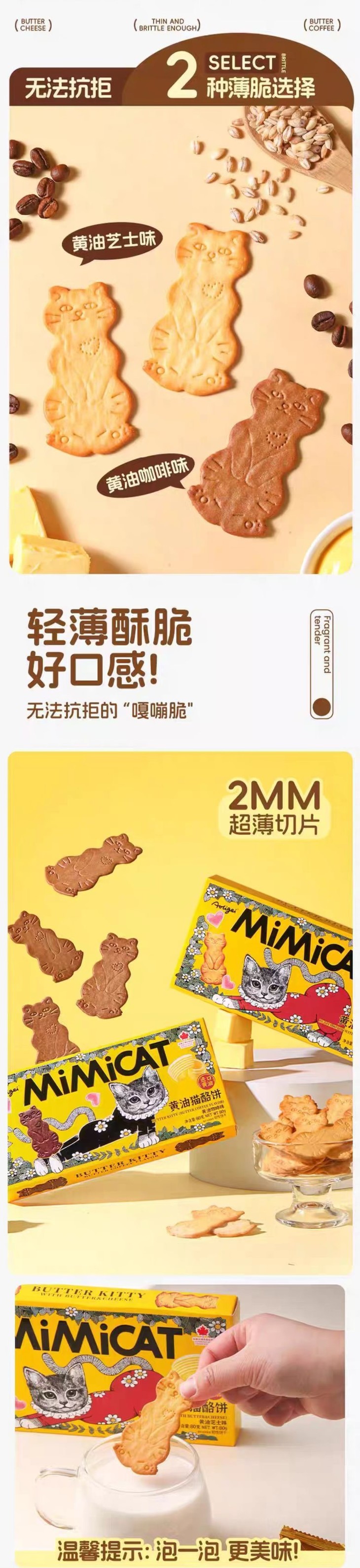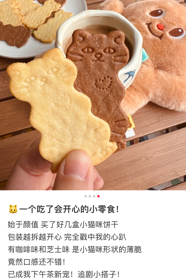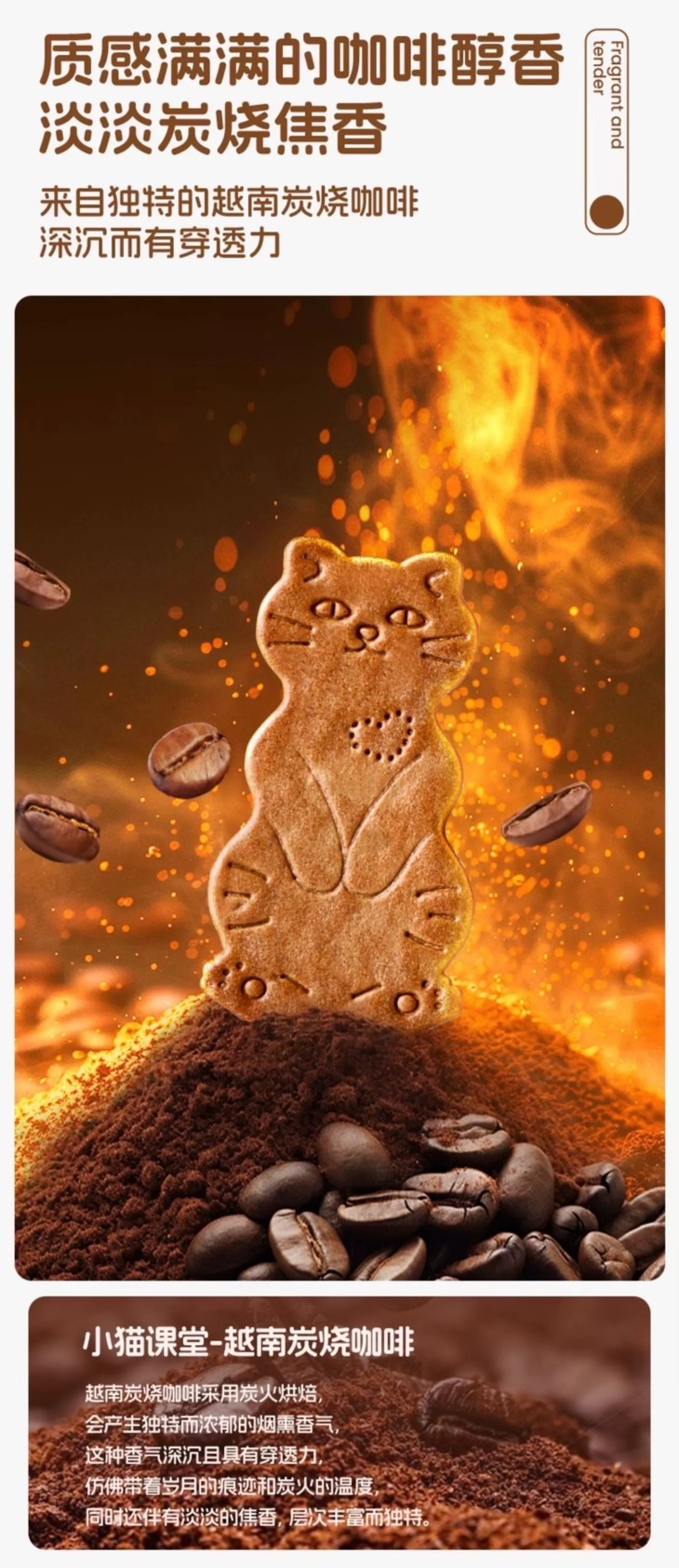 猫饼包装,太爱了,连内袋都是不同的猫猫图案!饼子也是2mm的超薄切片,咬下去嘎嘣脆,黄油芝士味咸香醇厚,一口狂喜,越南炭烧咖啡风味更绝,炭火烘焙的咖啡粉带来深沉焦香,微苦不甜越嚼越有滋味,仿佛把整家猫咖的香气都吃进了嘴里!小朋友还可以泡到奶里,风味层次更是加倍!