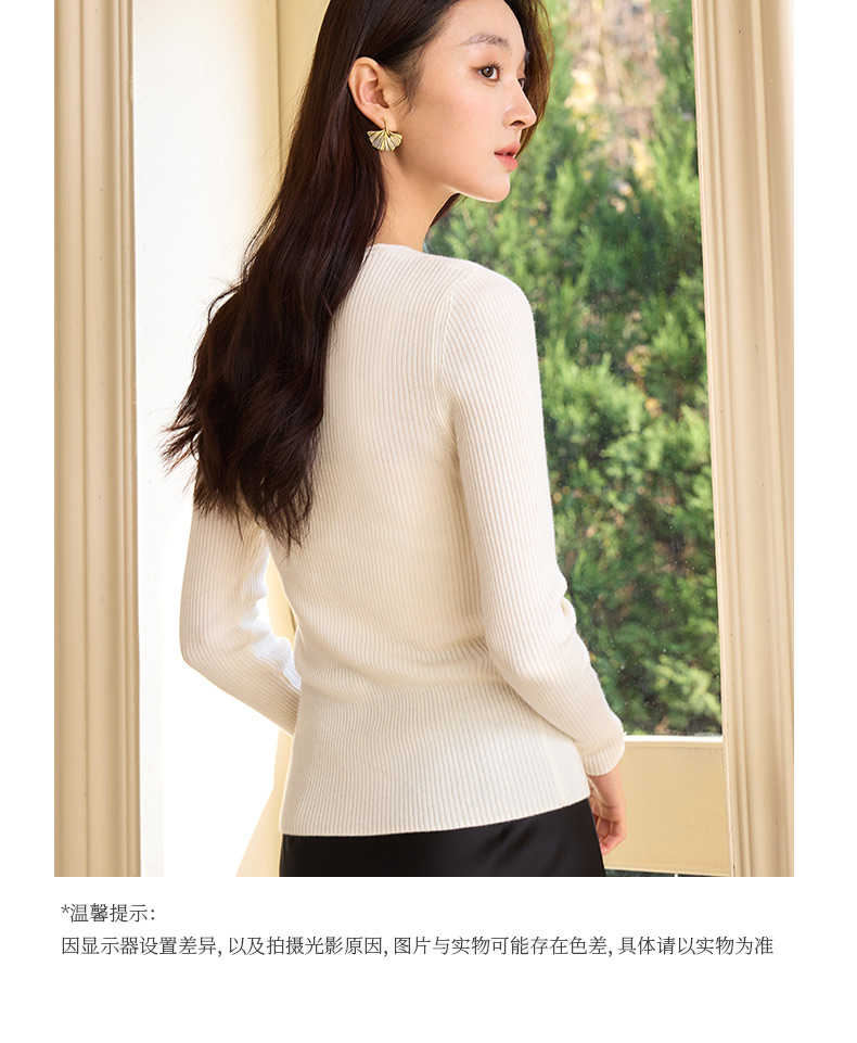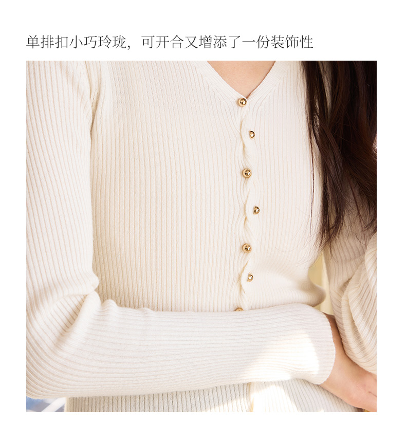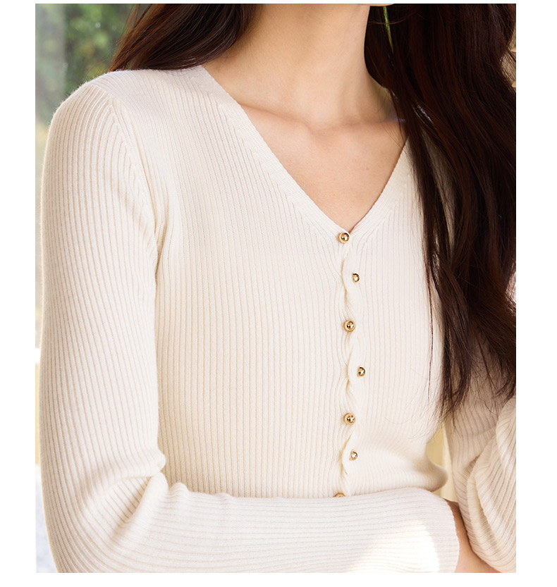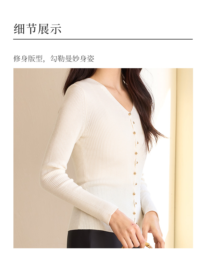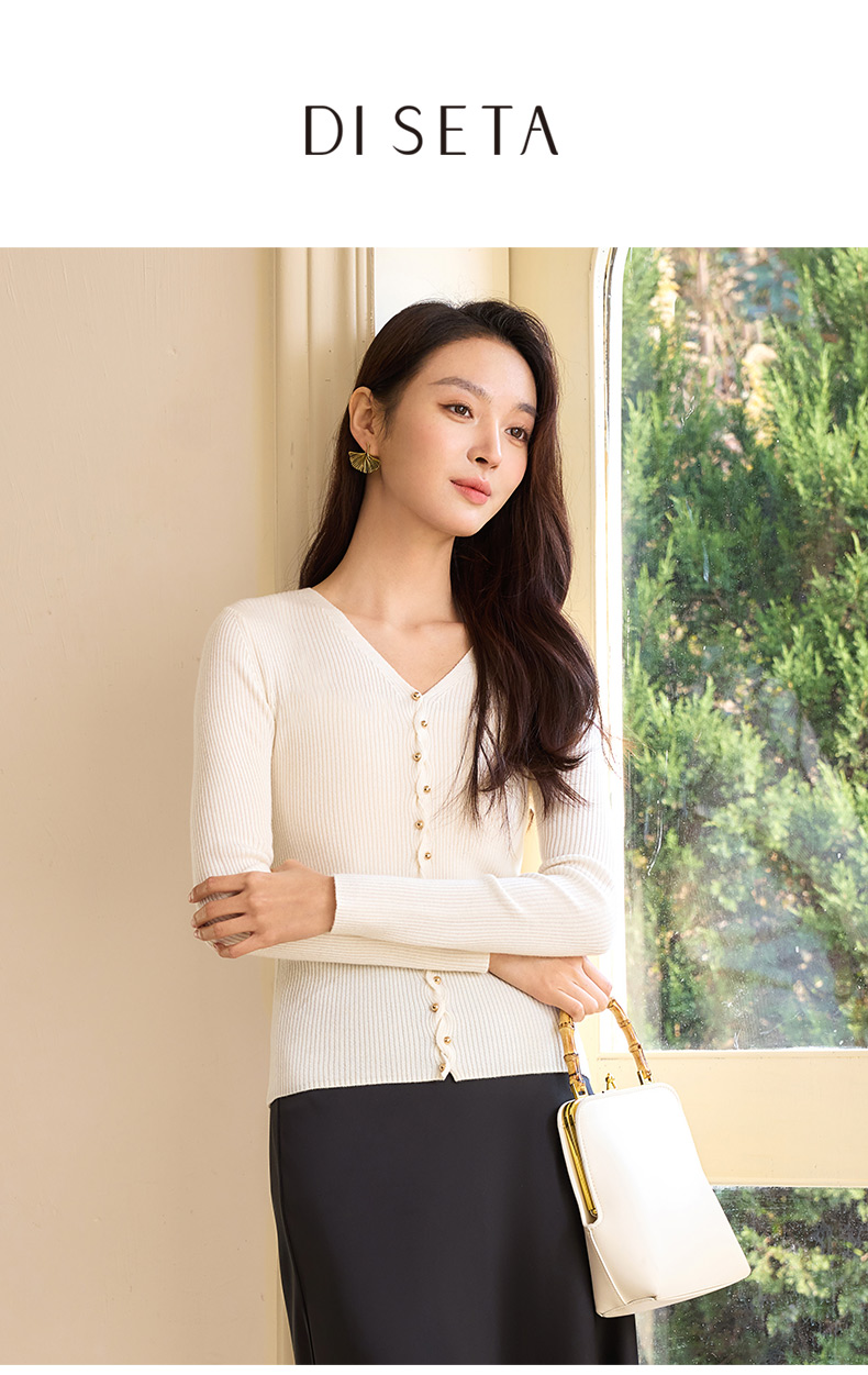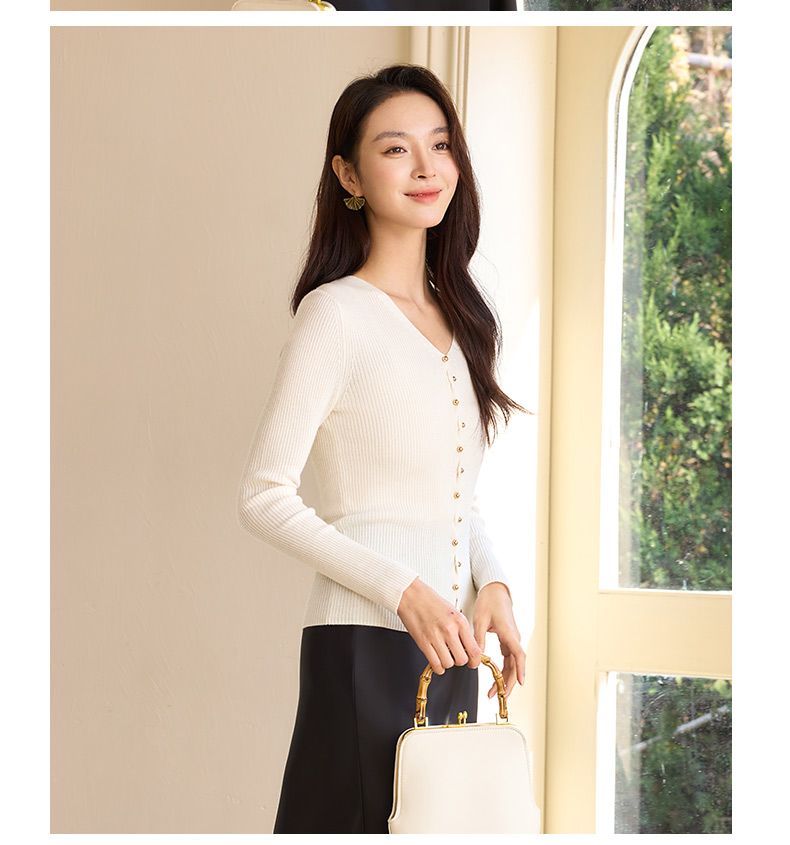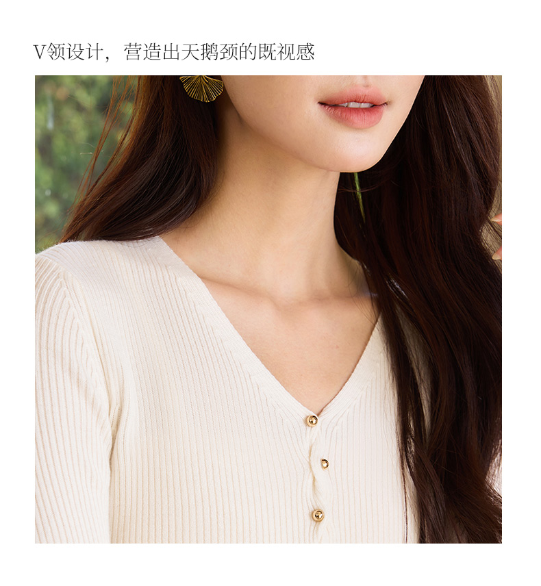 玳莎门襟交叠设计感针织毛衫女2025新款修身小众长袖V领毛衣 FA33302
