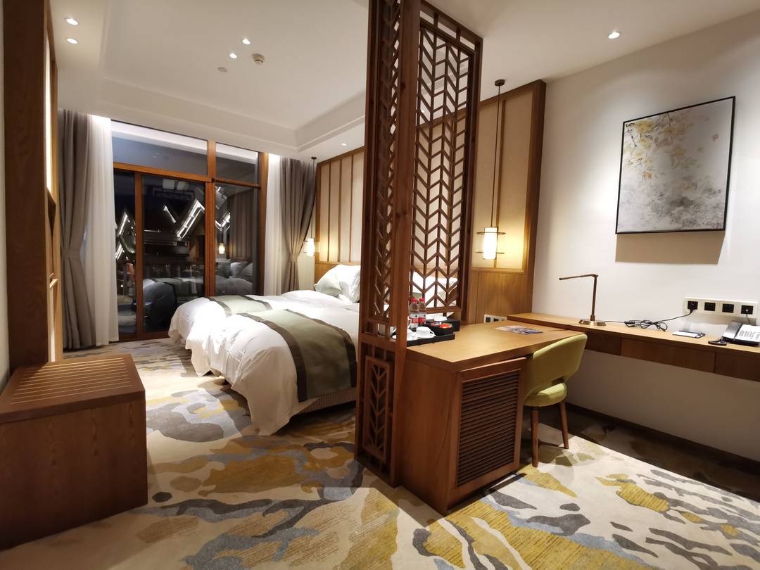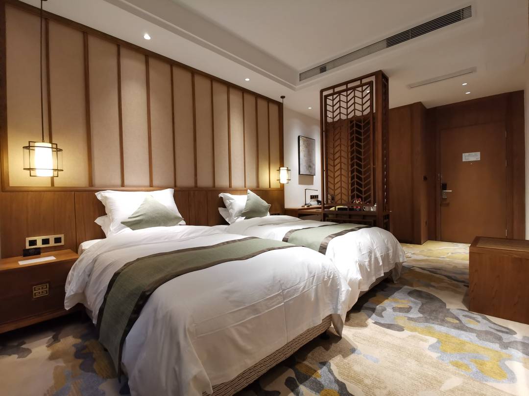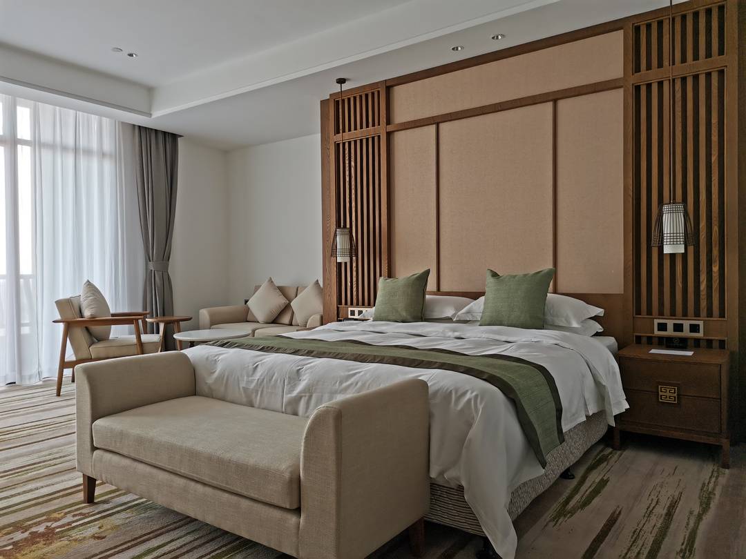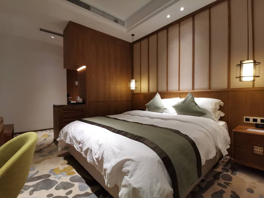 酒店客房设计细致考究,现代简约风格和中式典雅风格相碰撞,融合造就了清池温泉酒店独有的风格。