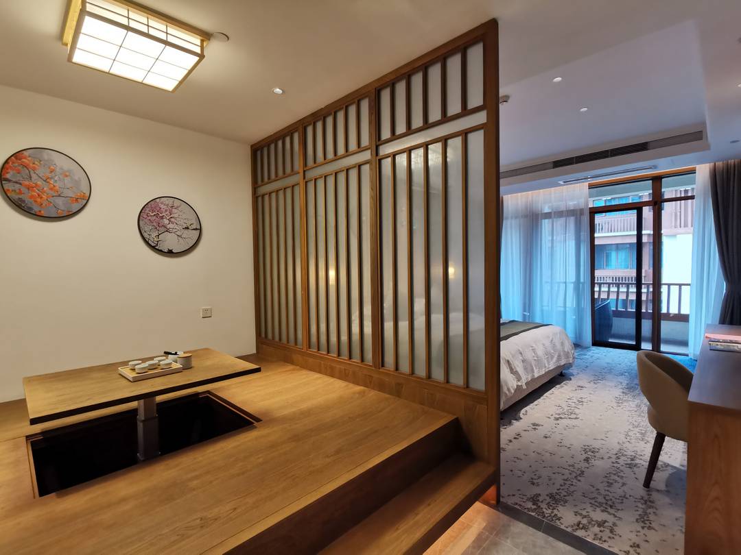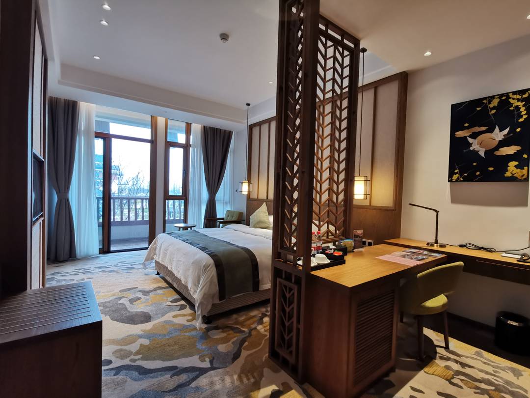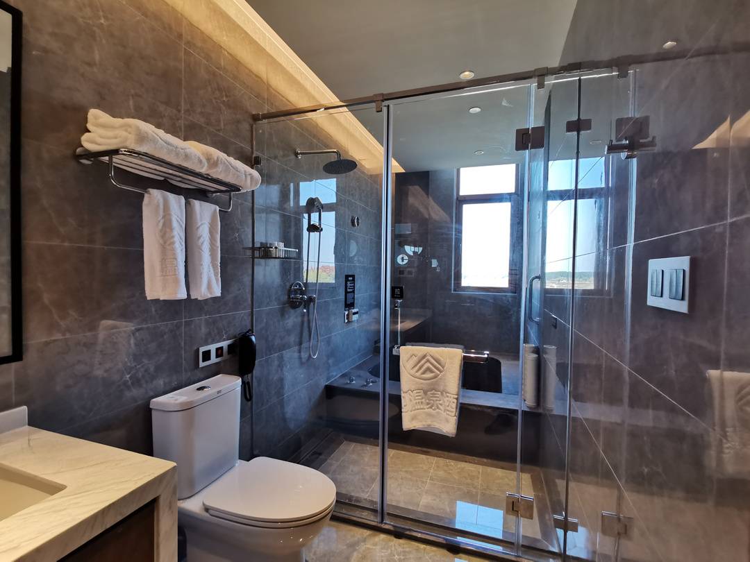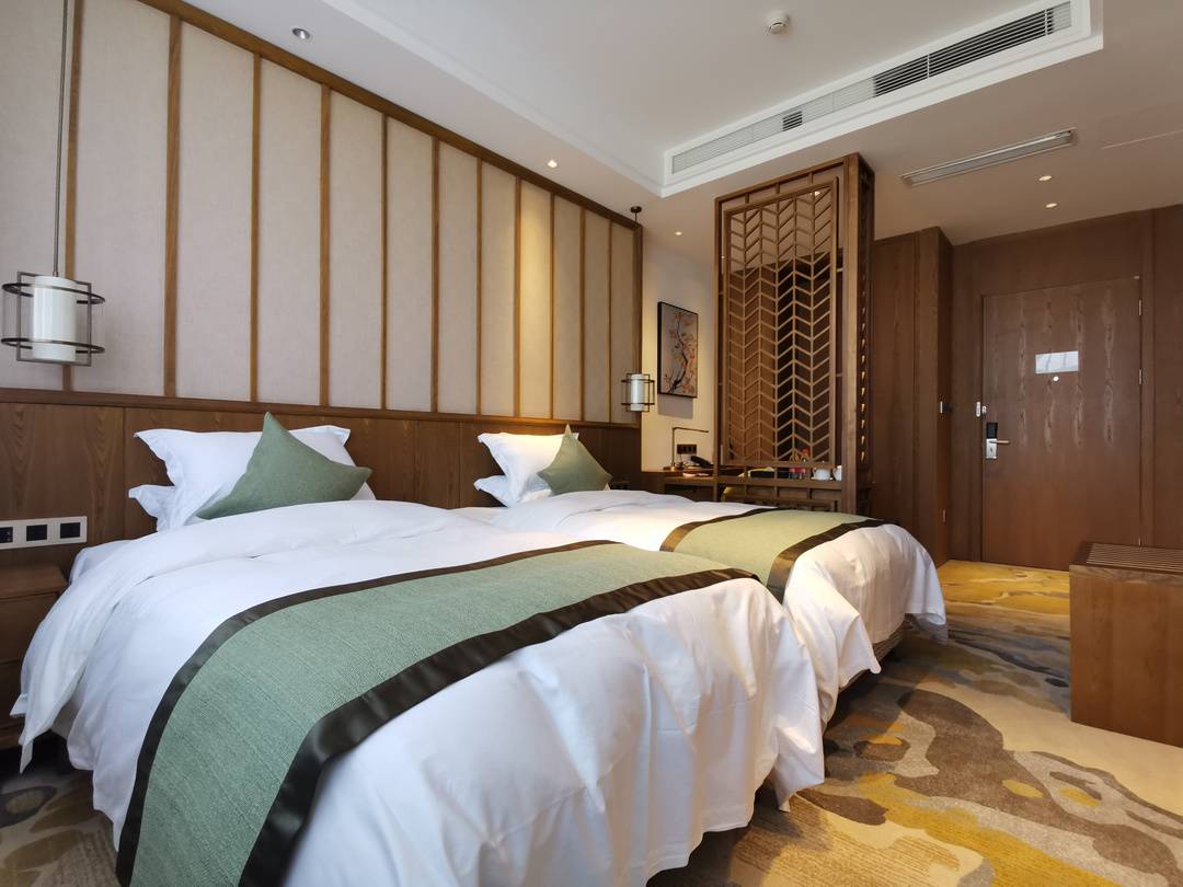 酒店客房设计细致考究,现代简约风格和中式典雅风格相碰撞,融合造就了清池温泉酒店独有的风格。