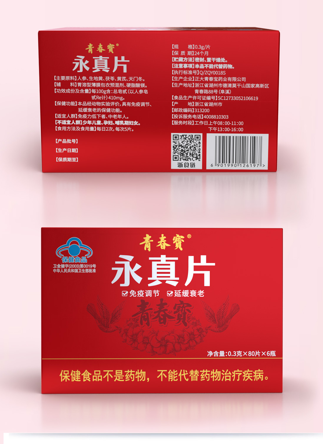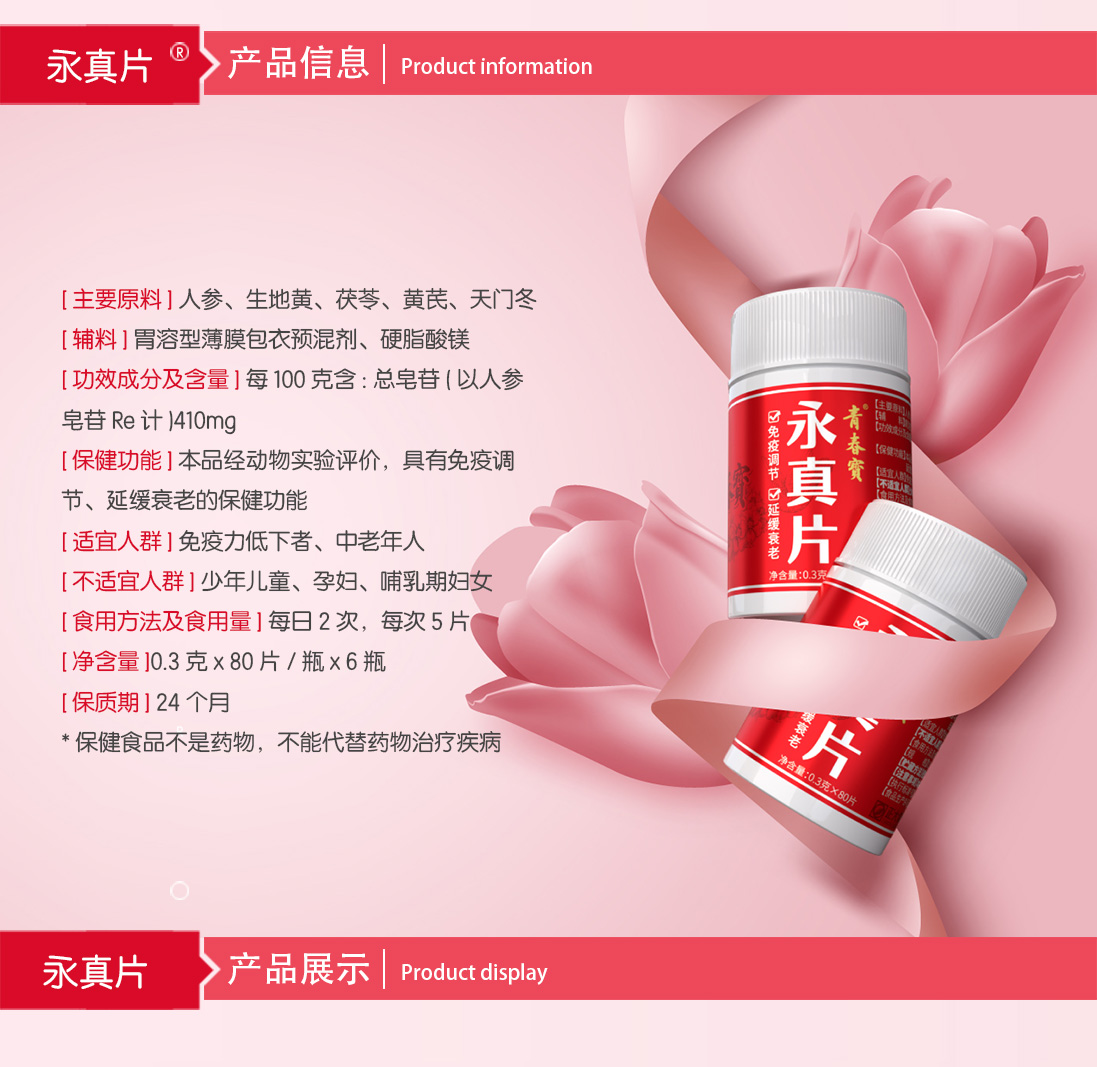 【12月专享】青春宝永真片简装调节免疫人参皂苷送父母长辈保健品0.3g/片*80片*6瓶
