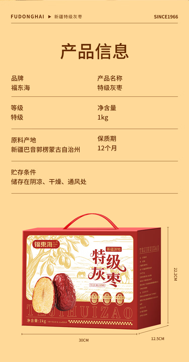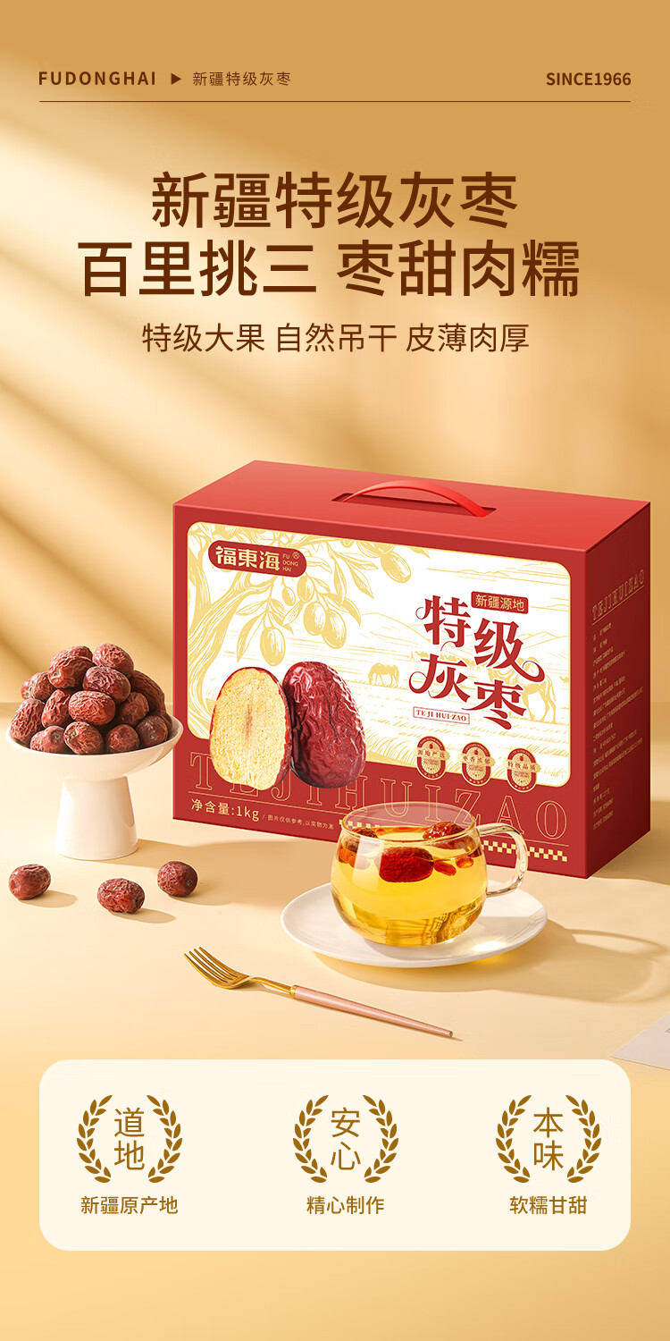 福东海 新疆灰枣红枣礼盒1000g 若羌灰枣大枣零食干货补品煮粥煲汤送礼送长辈