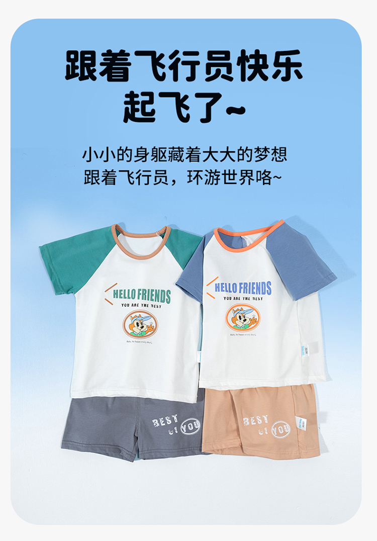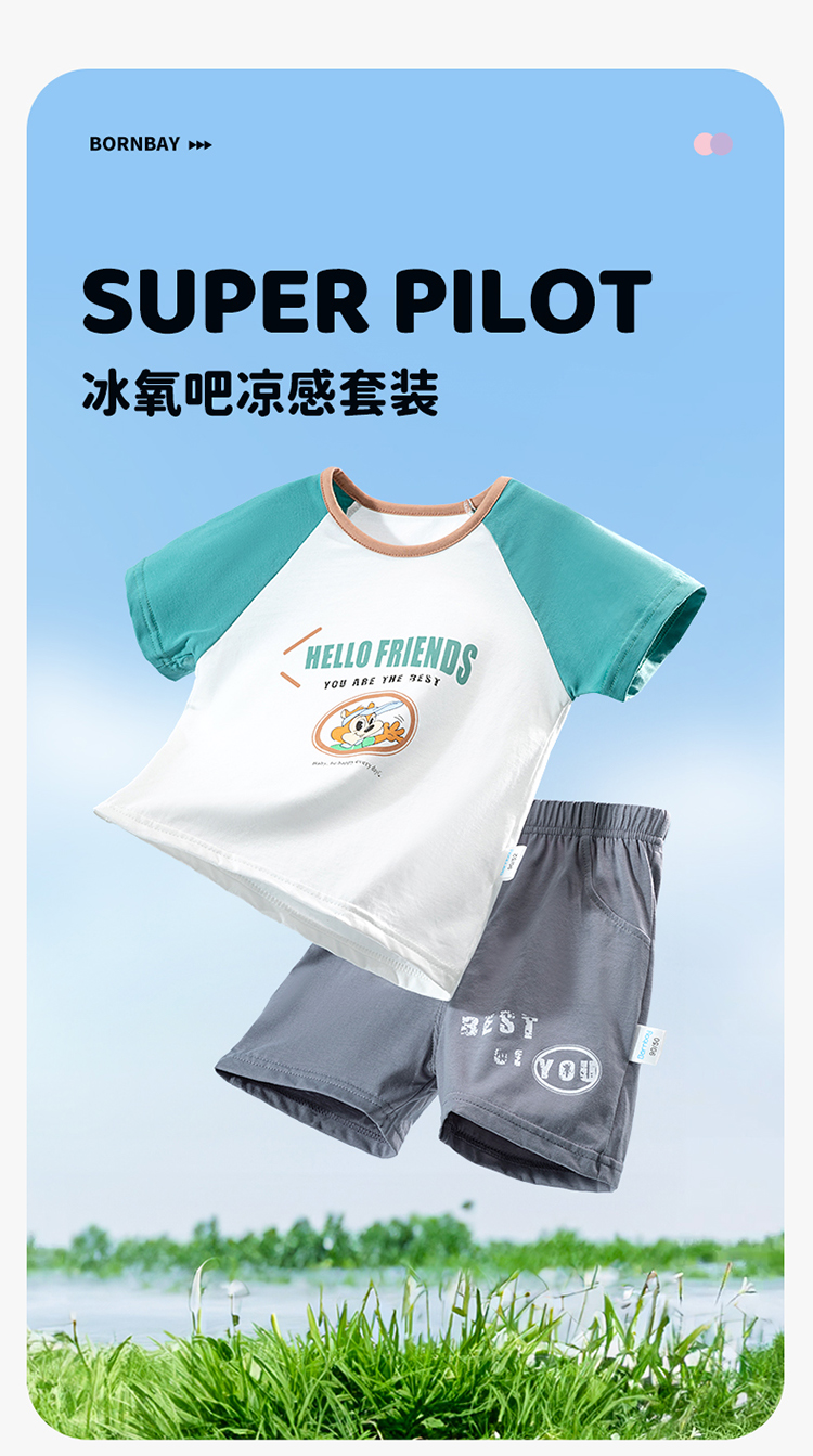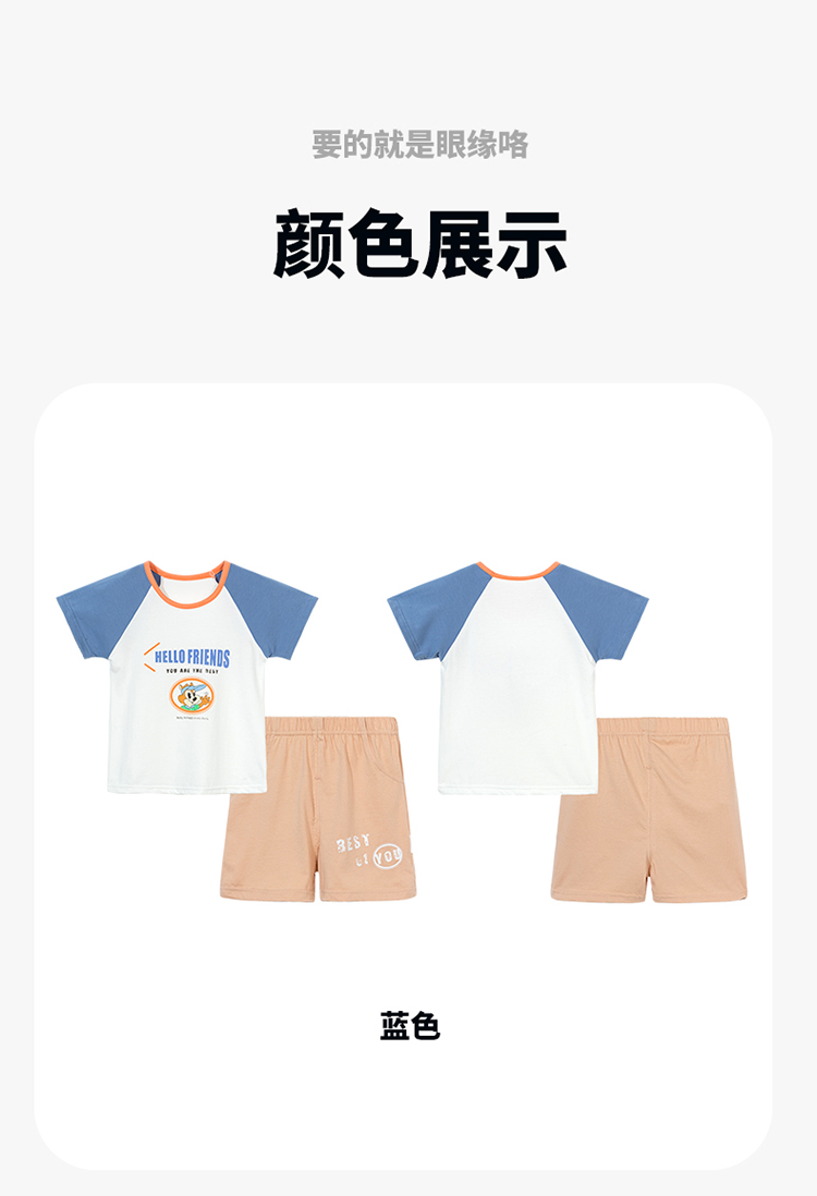 贝贝怡童装儿童透气短袖短裤男童套装ZB2DT084