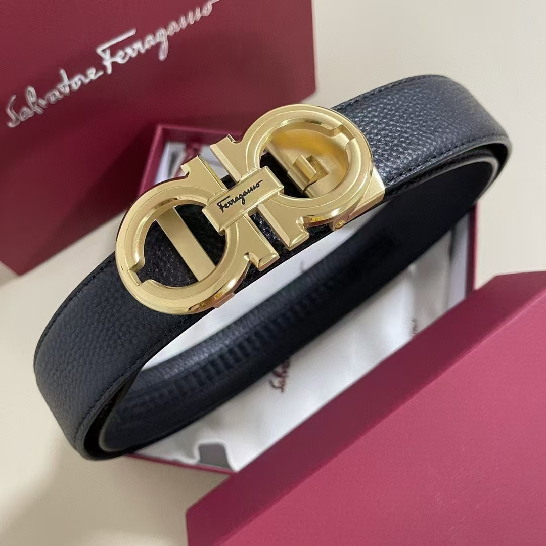 菲拉格慕男士顶级自动腰带.字母拼接风不锈钢挂扣搭配,荔枝纹进口头层牛皮荔枝纹底老底.35毫米宽,全套包装,长度95-125cm.自由剪切110斤-210斤都可以佩戴,皮带长短根据自身腰围随意裁剪~
