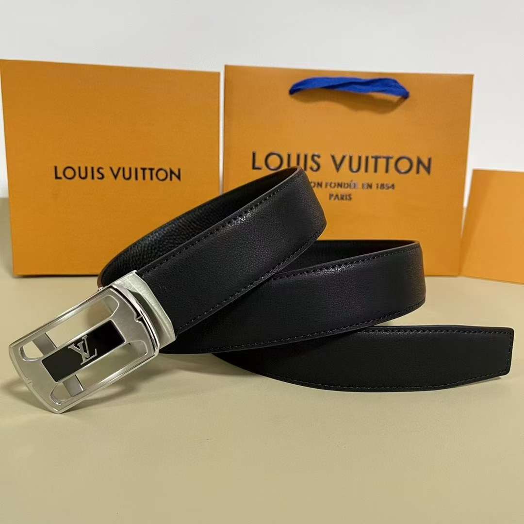 Lv男士新款,顶级自动腰带.字母标不锈钢挂扣搭配平纹进口头层牛皮荔枝纹底.35毫米宽,全套包装,长度95-125cm.自由剪切.