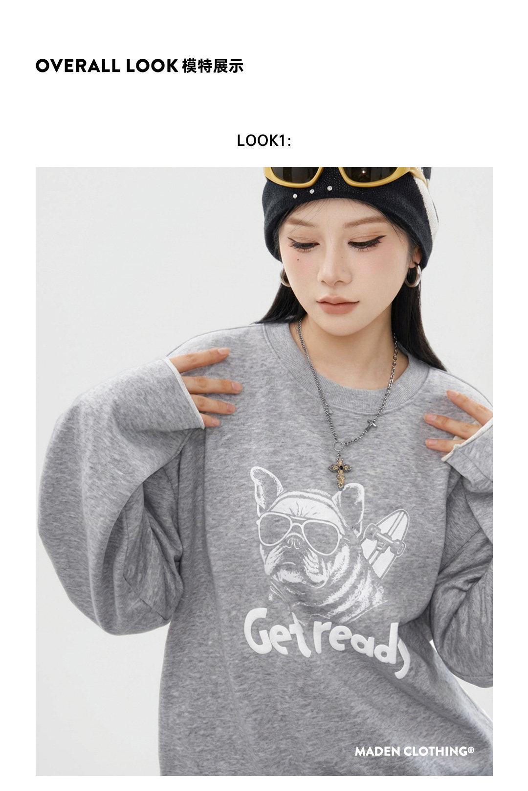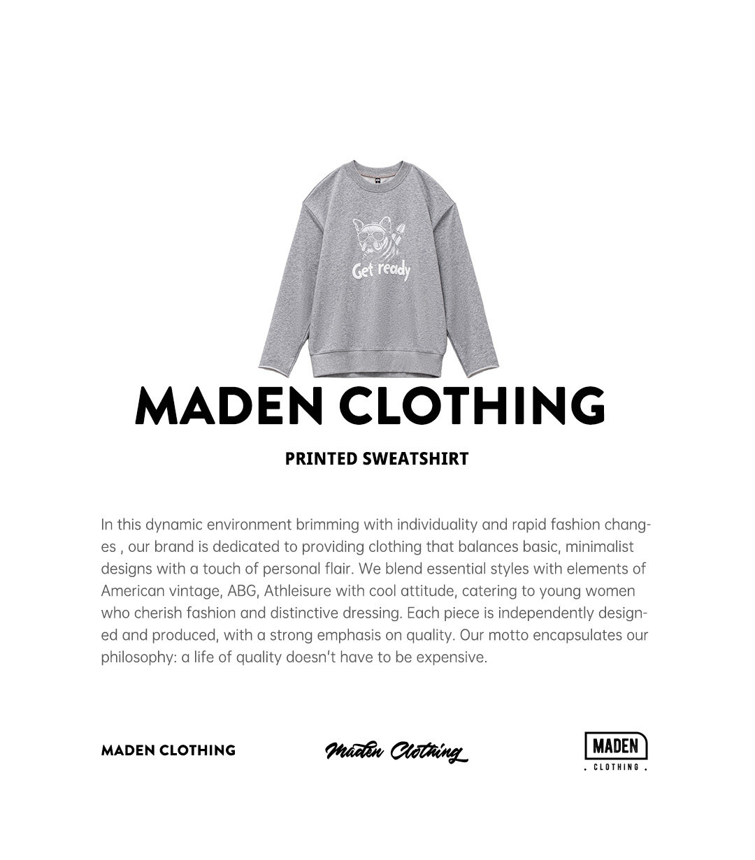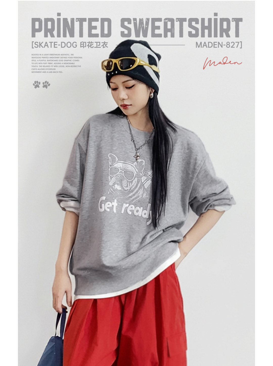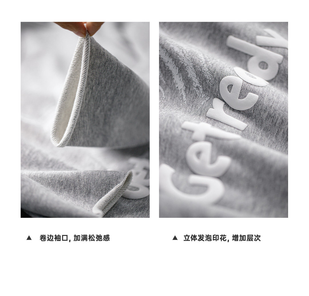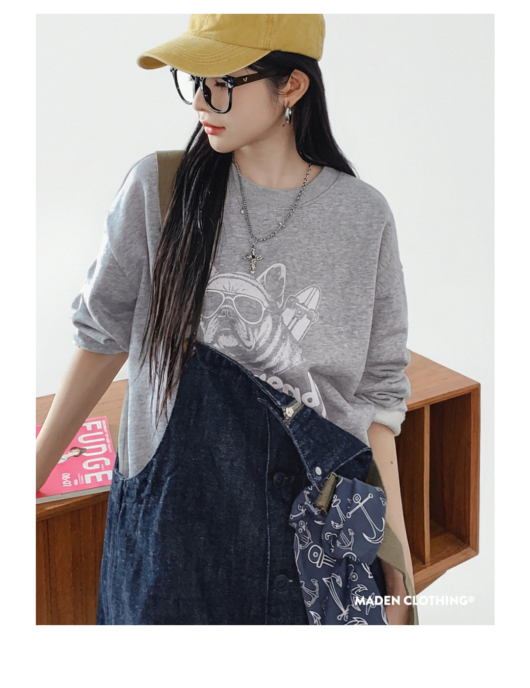 马登美式复古灰色重磅套头宽松内搭印花卫衣长袖T恤上衣女士春秋