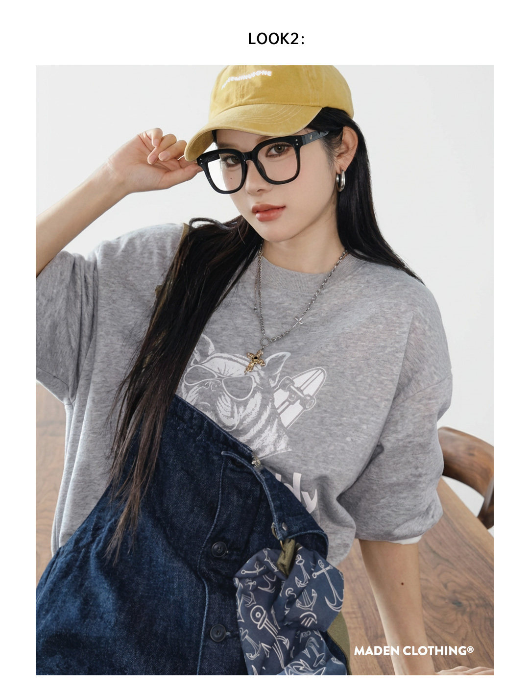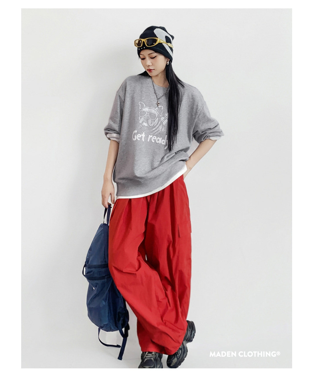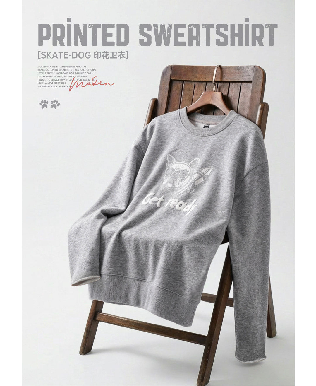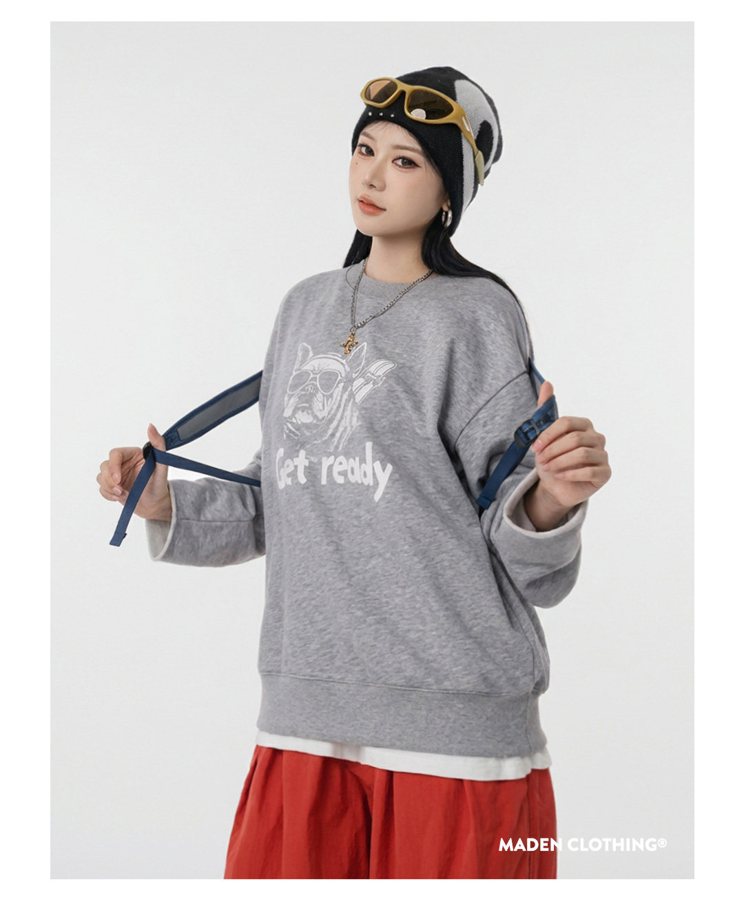马登美式复古灰色重磅套头宽松内搭印花卫衣长袖T恤上衣女士春秋