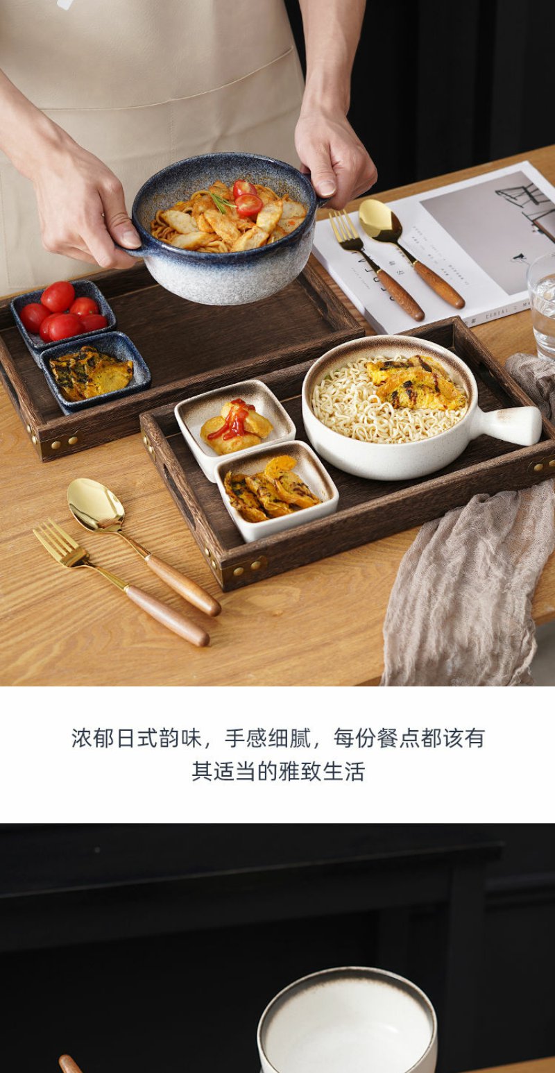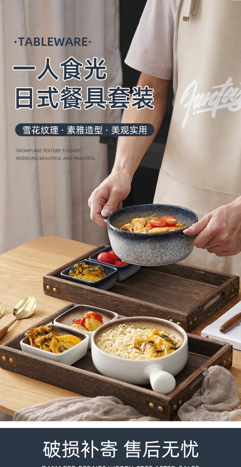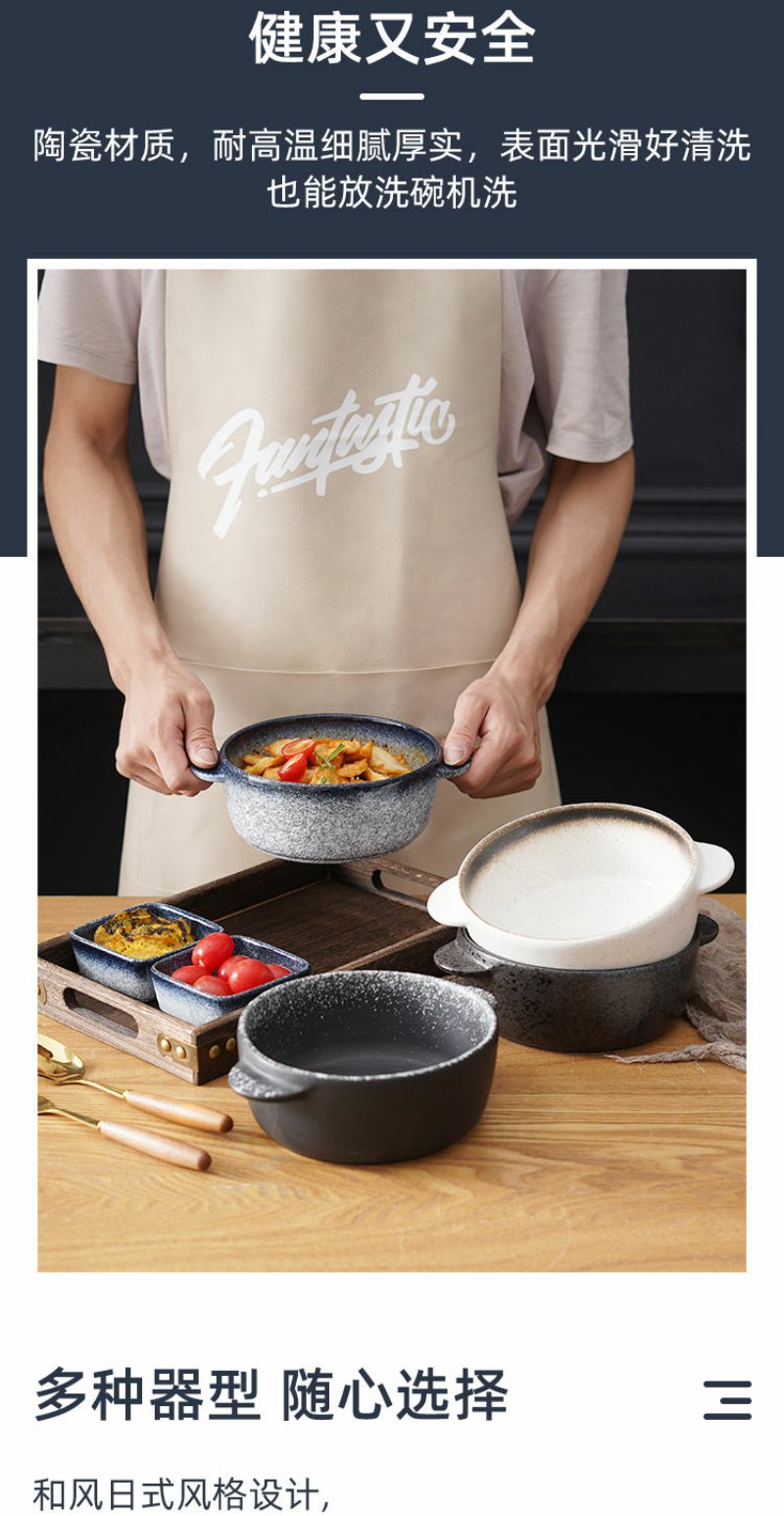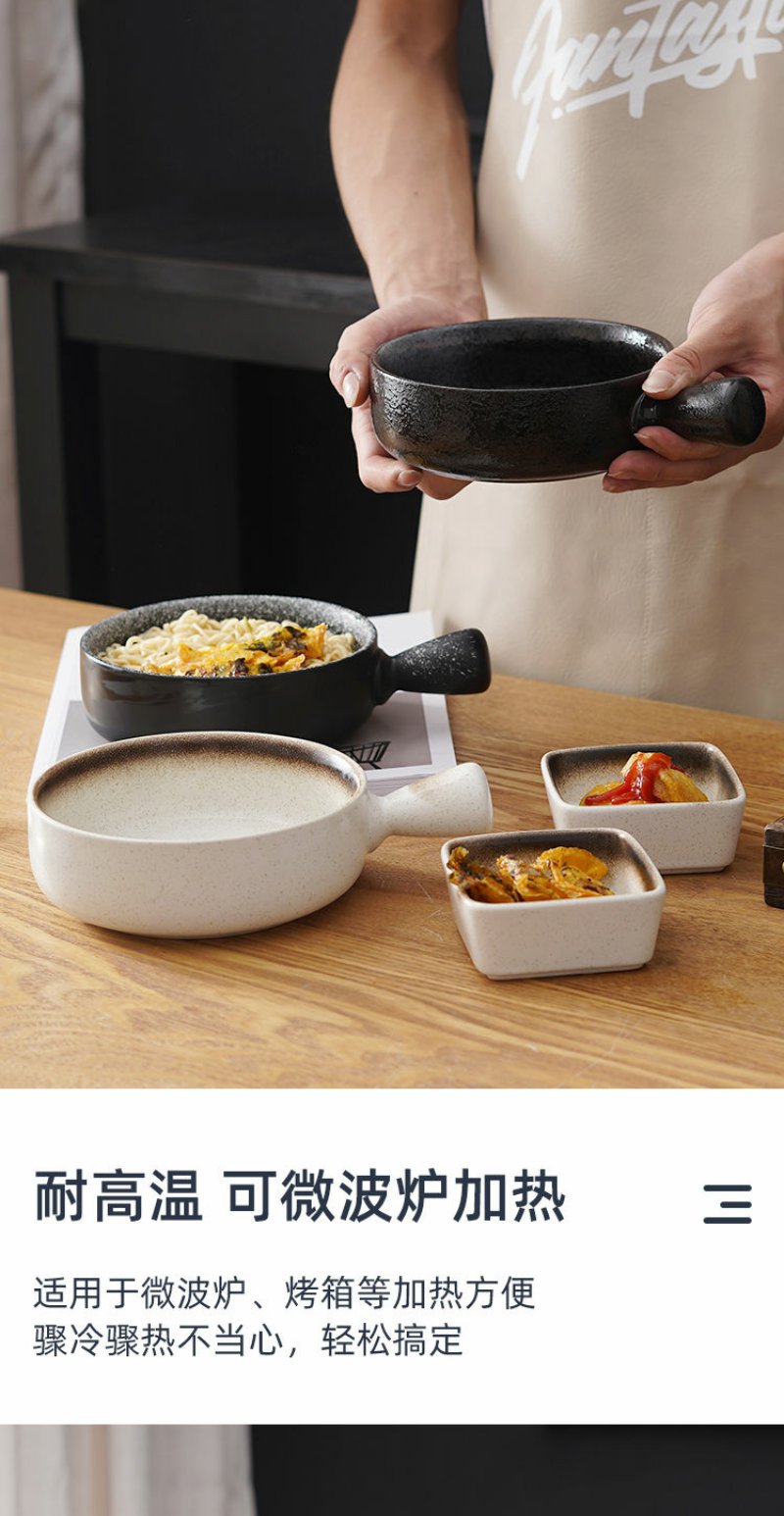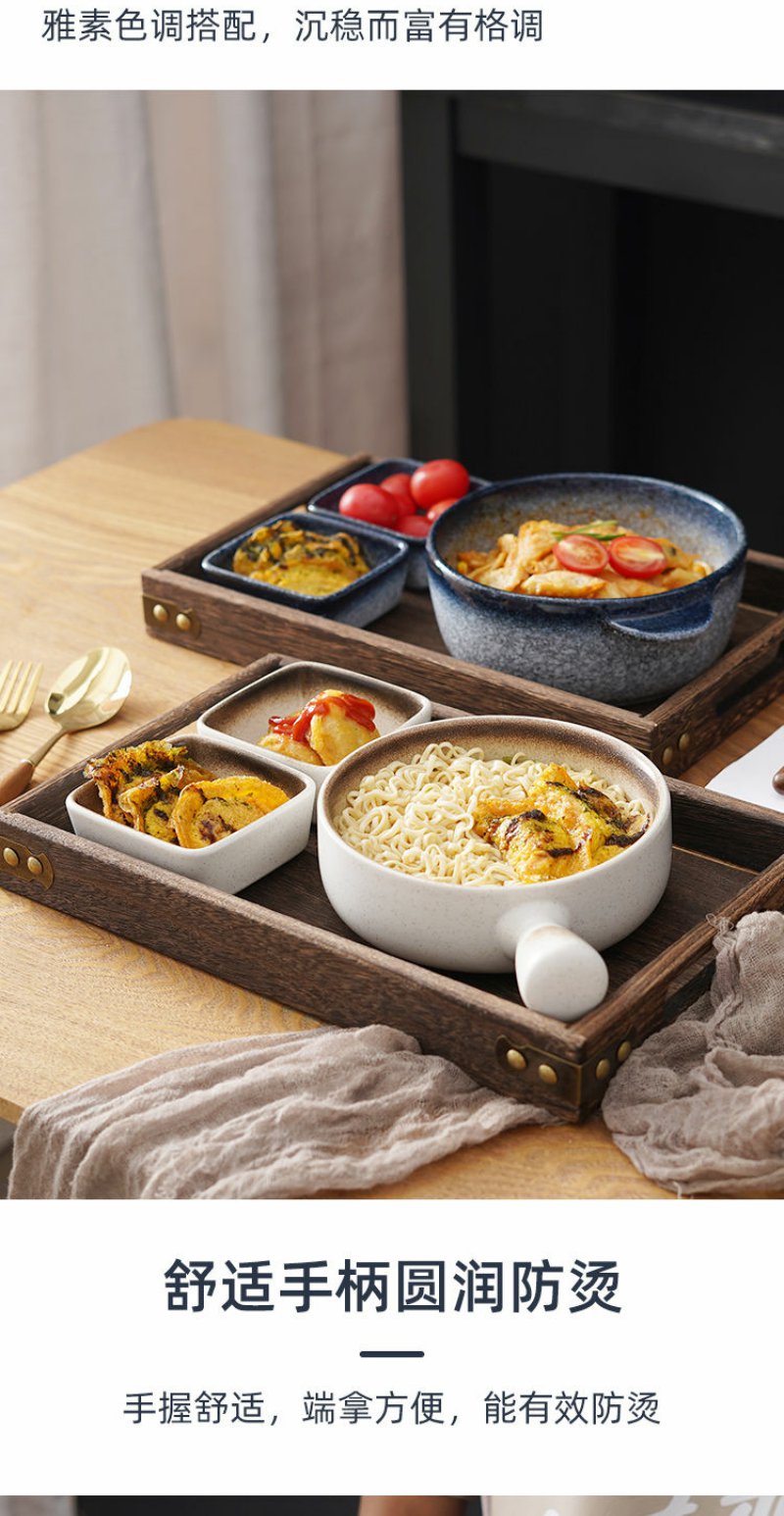 日式陶瓷一人食餐具面碗手柄碗沙拉碗双耳汤碗吃饭碗家用碗碟套装