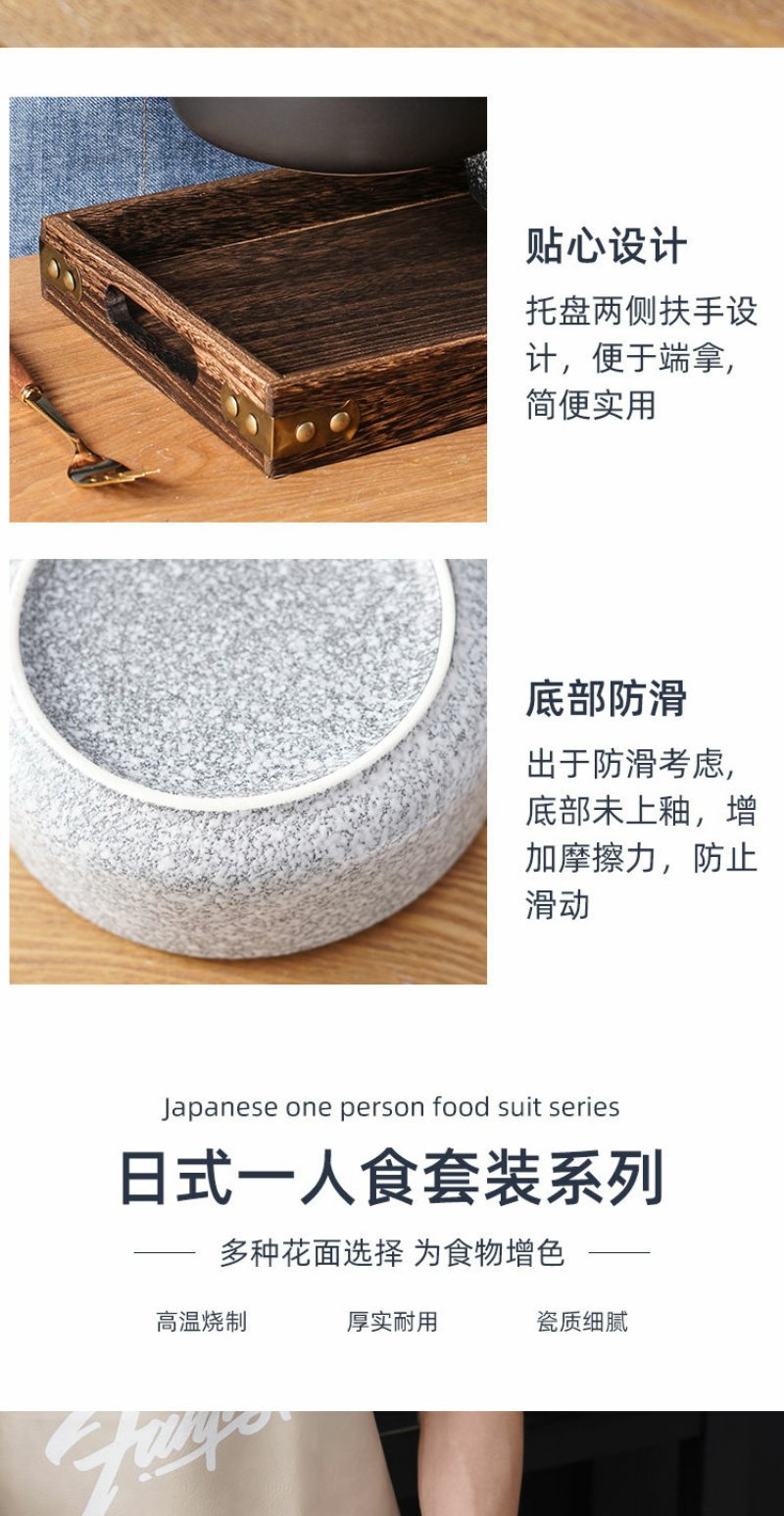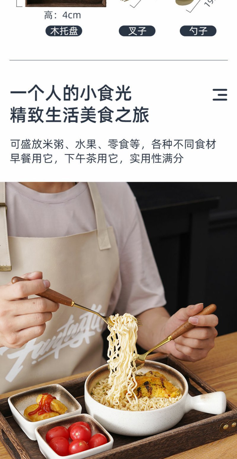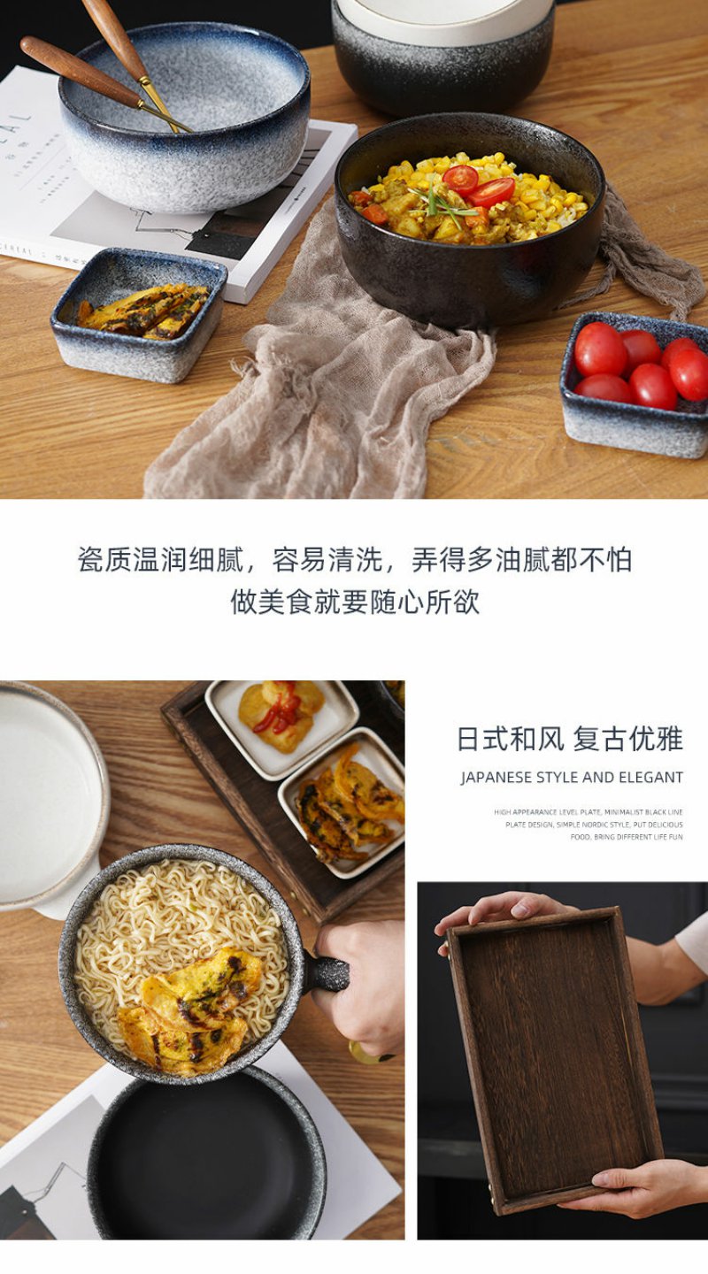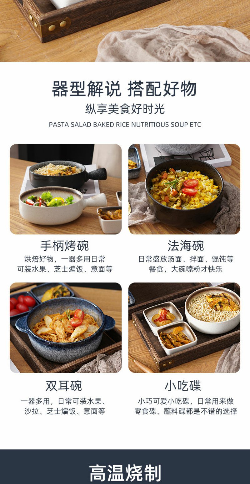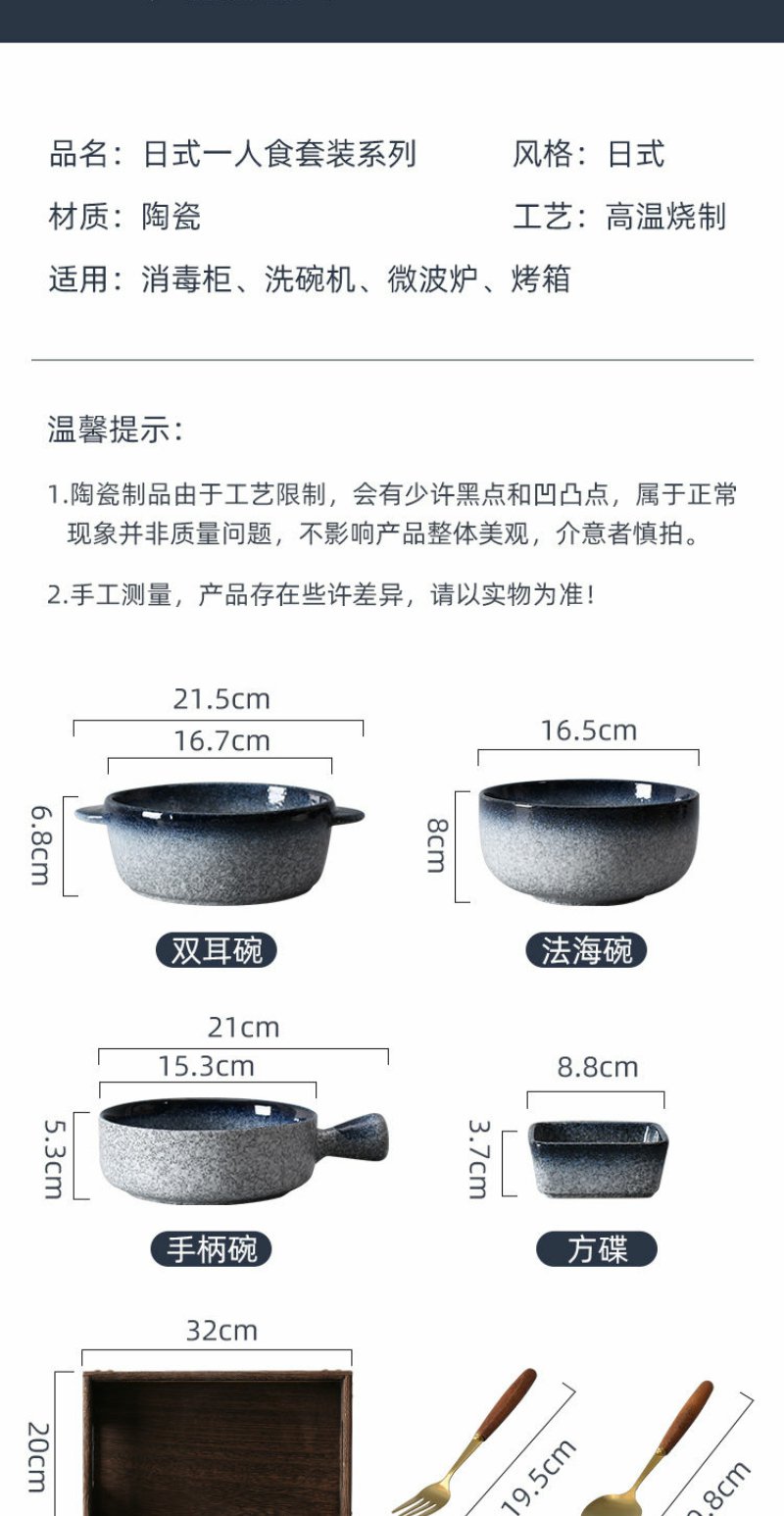 日式陶瓷一人食餐具面碗手柄碗沙拉碗双耳汤碗吃饭碗家用碗碟套装