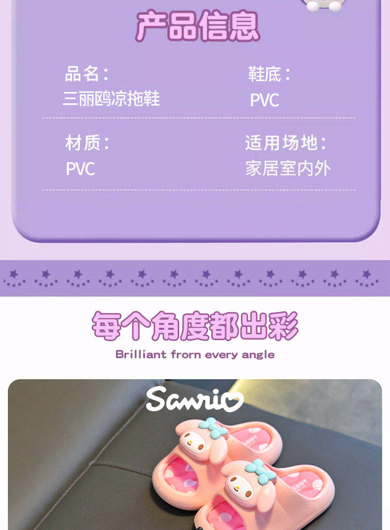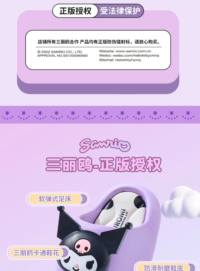 三丽鸥儿童凉拖鞋踩屎感女童夏卡通可爱防滑室内洗澡软底宝宝拖鞋