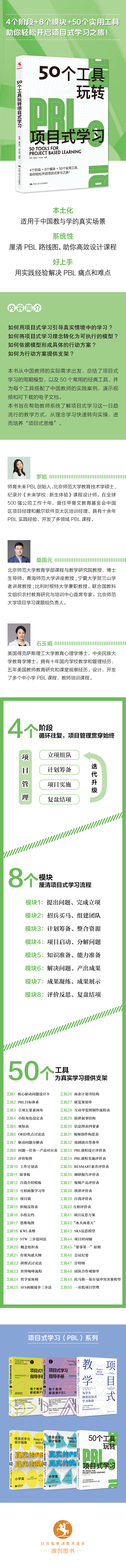 本书精选了在项目式学习周期模型的4个阶段中常用且实用的50个工具,并对每一个工具进行了详解。