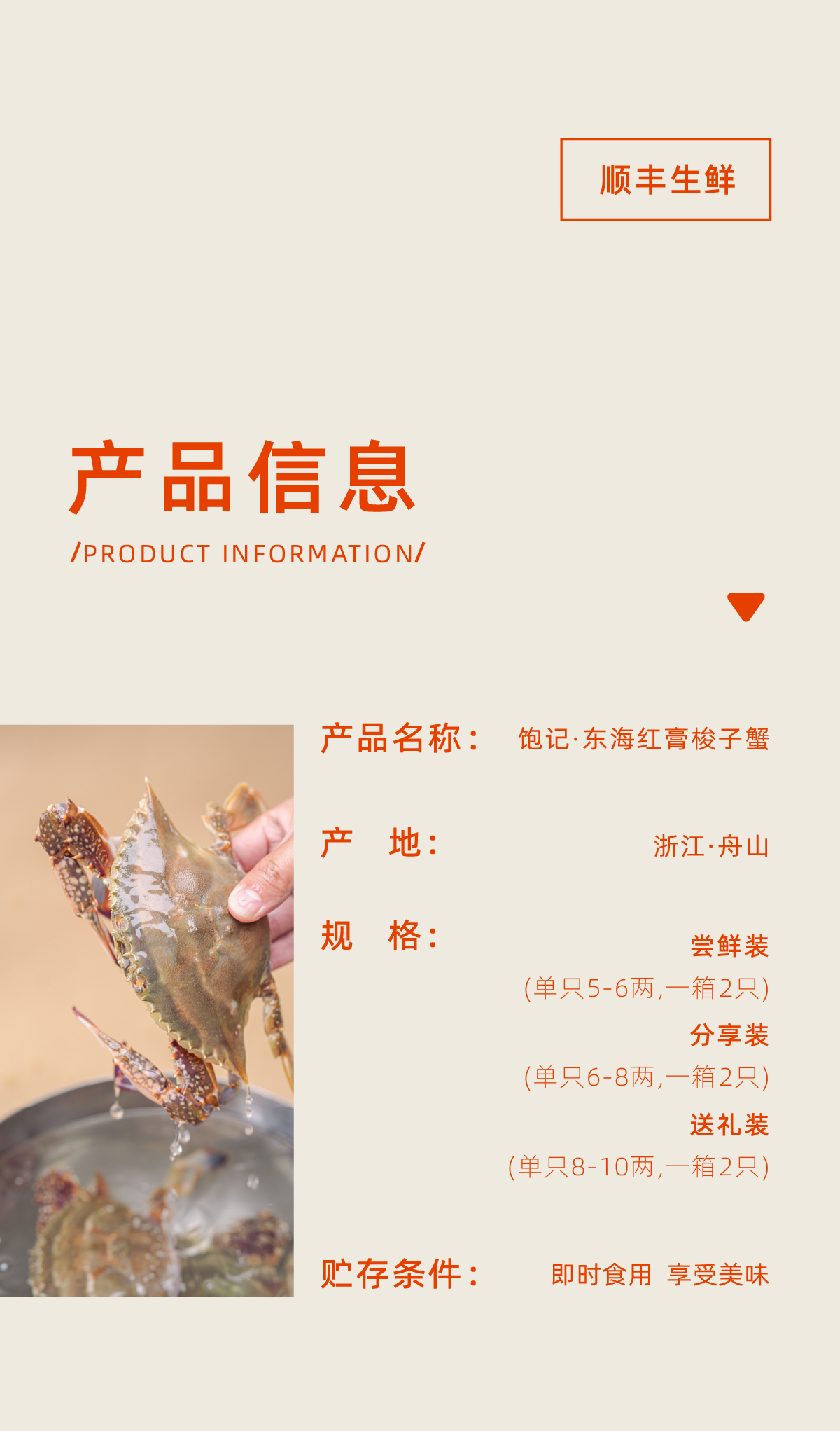 饱记 东海红膏梭子蟹野生肥美鲜顺丰冷鲜发货