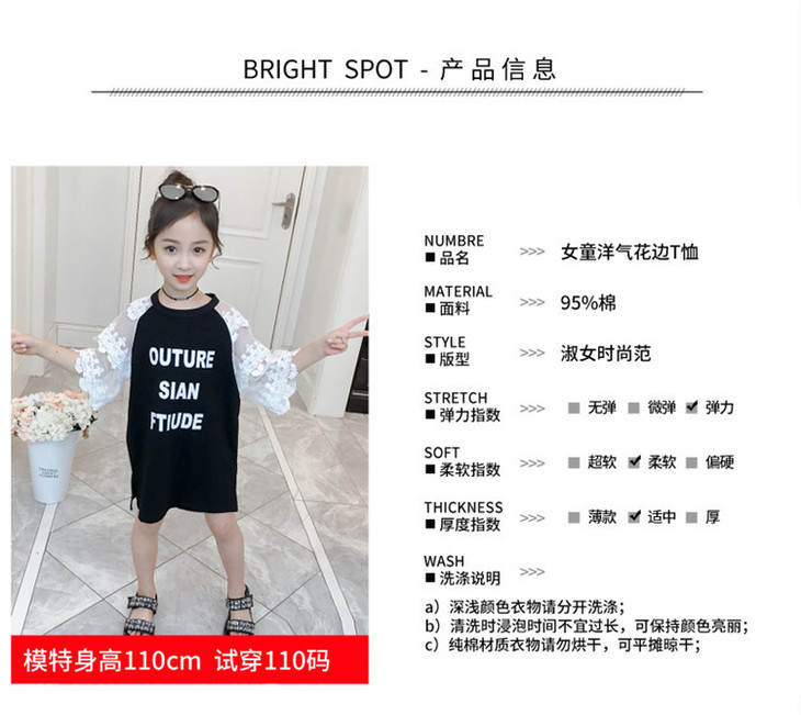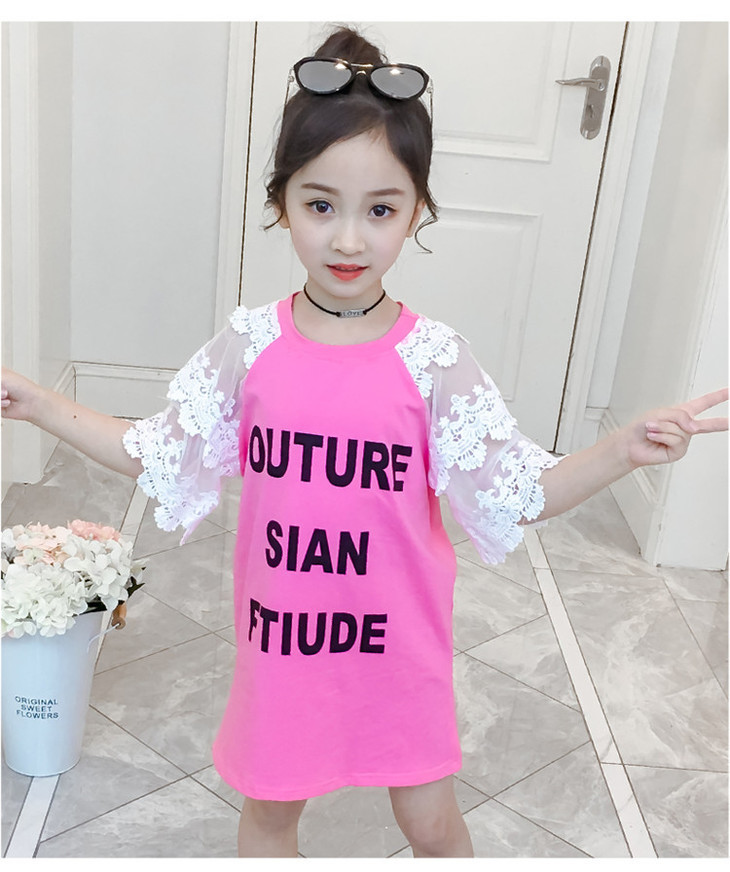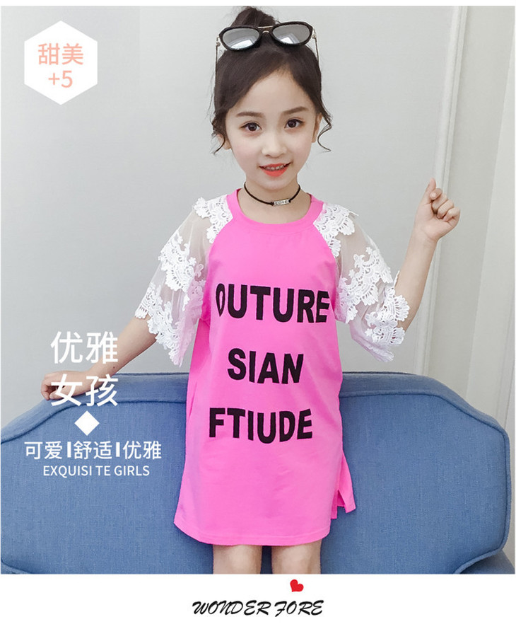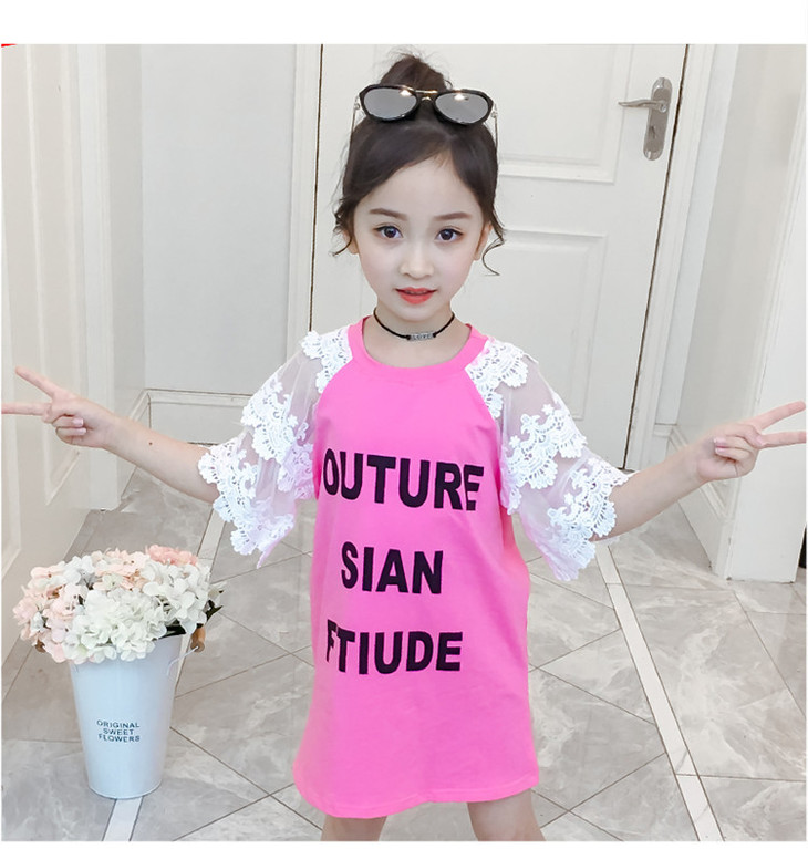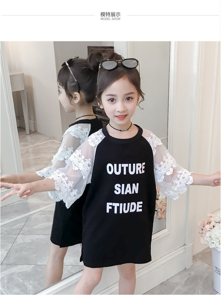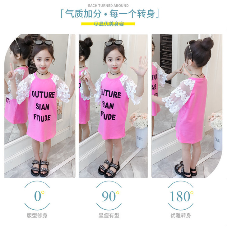 【童装】儿童t恤夏装短袖韩版儿童洋气长t小女孩时髦连衣裙潮