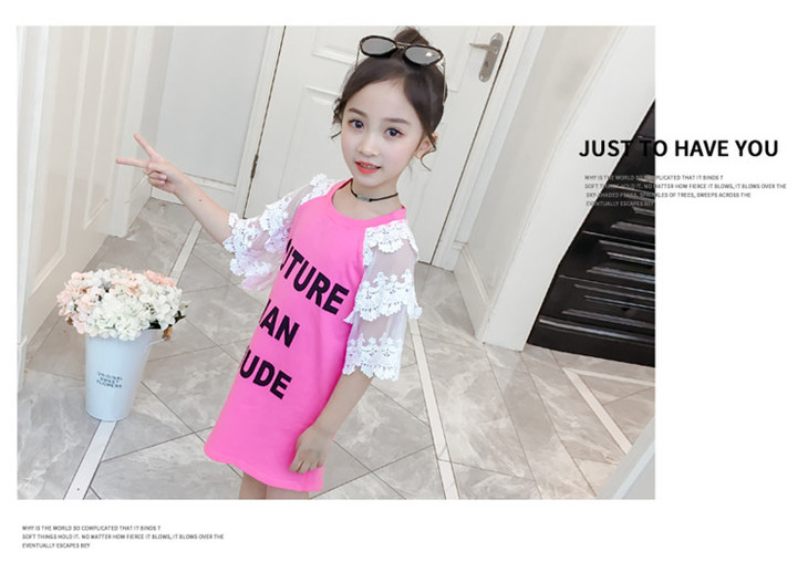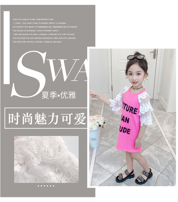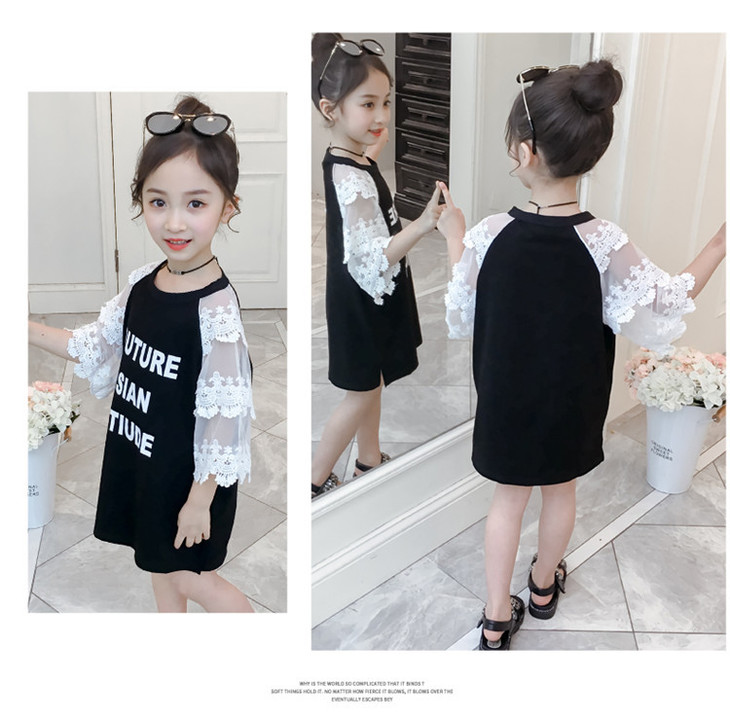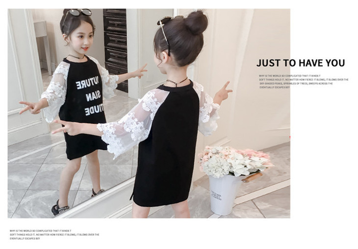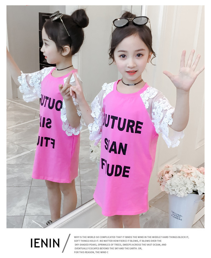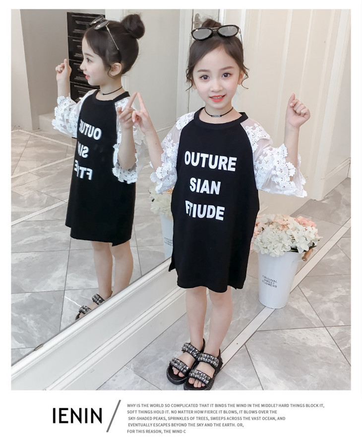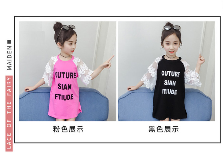 【童装】儿童t恤夏装短袖韩版儿童洋气长t小女孩时髦连衣裙潮