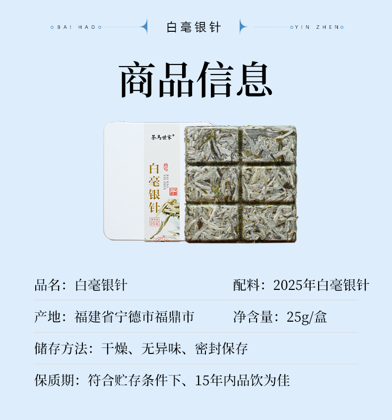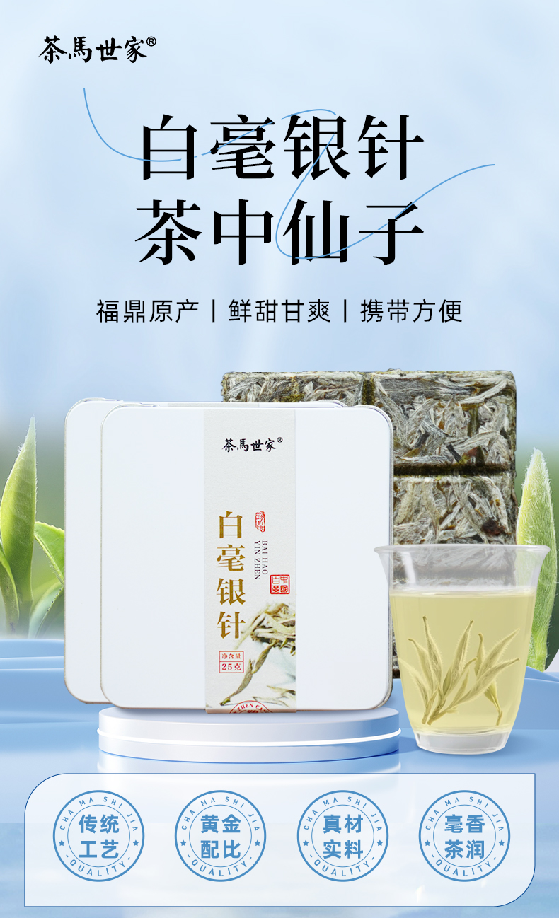 茶马世家福鼎白毫银针 点头镇花香水甜白茶茶叶25g*10盒