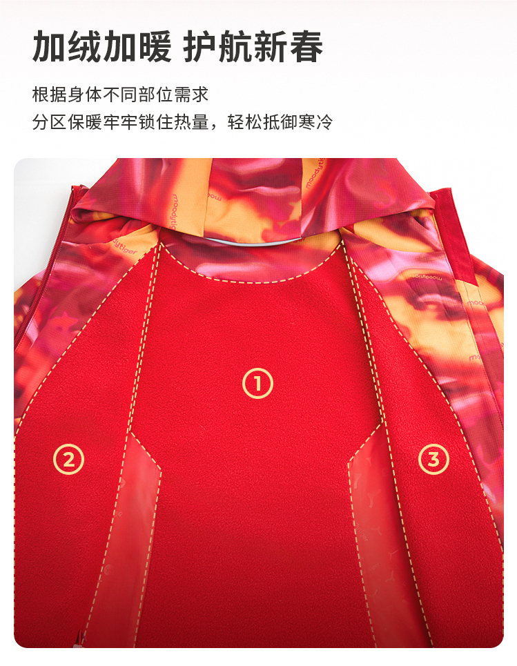 【春上新】8楼moodytiger儿童外套25春新年款户外加绒拒水厚连帽衫