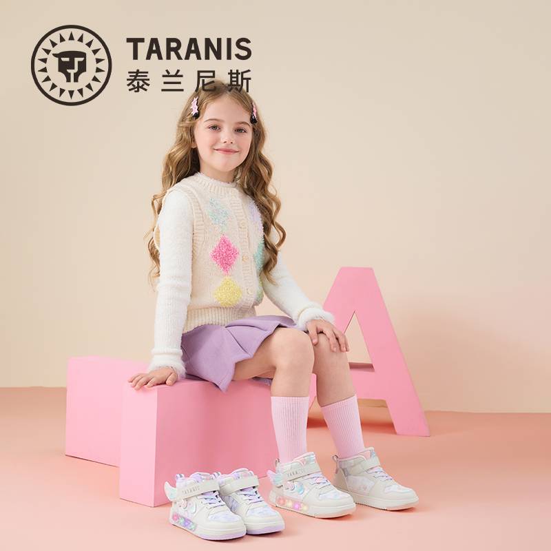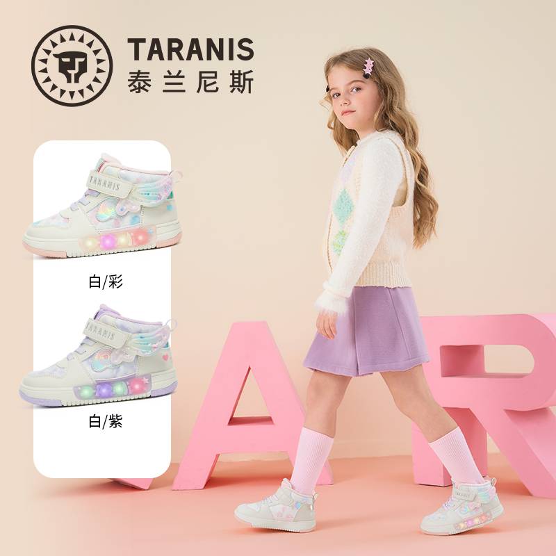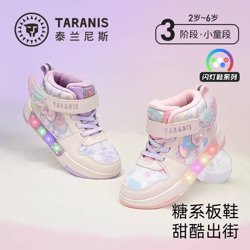 【春上新】8楼 泰兰尼斯 儿童闪灯板鞋2025冬新款3阶稳跑鞋温暖舒适防滑耐磨 吊牌价:568,活动价:499.9