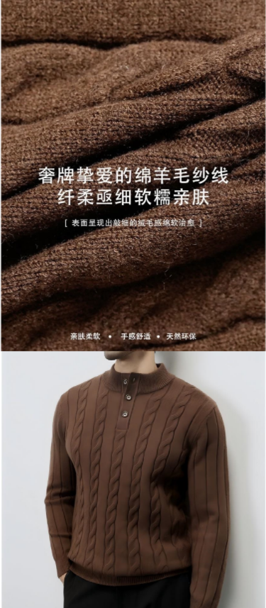 杰*亚同款 SUSX极简半高亨利领纽扣羊毛衫S0246833(下单3-7天发货)