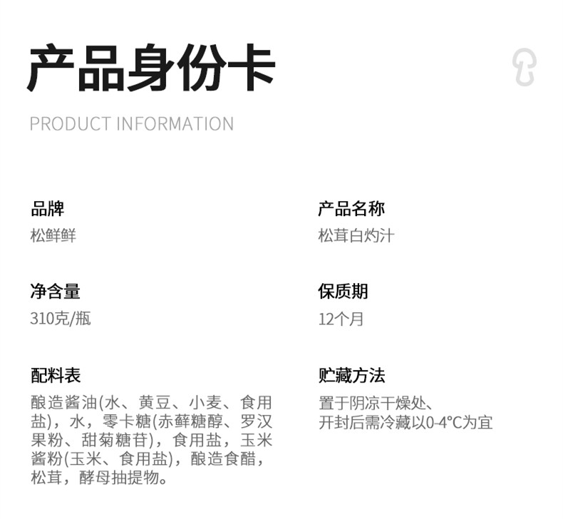 松茸白灼汁310g 净素配方 代替白砂糖 清蒸调味