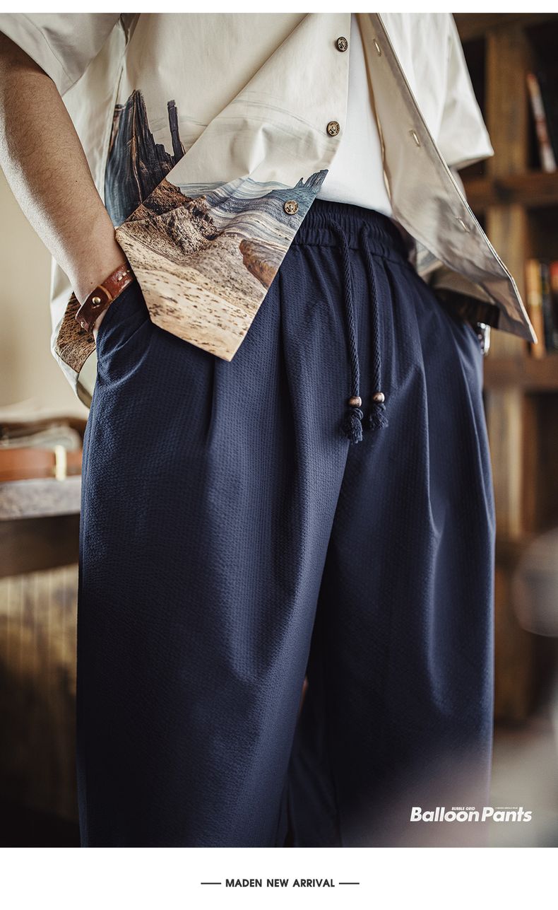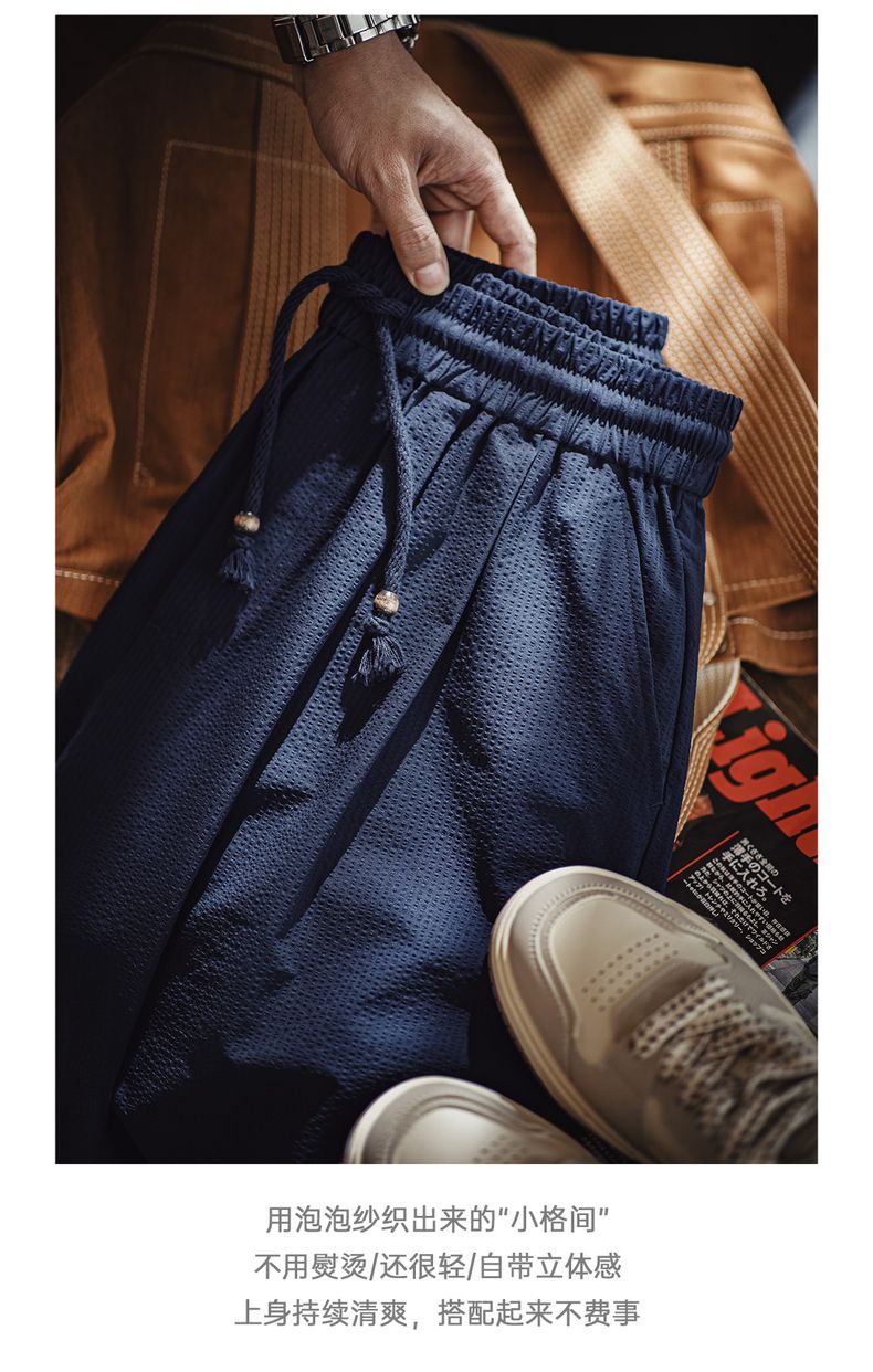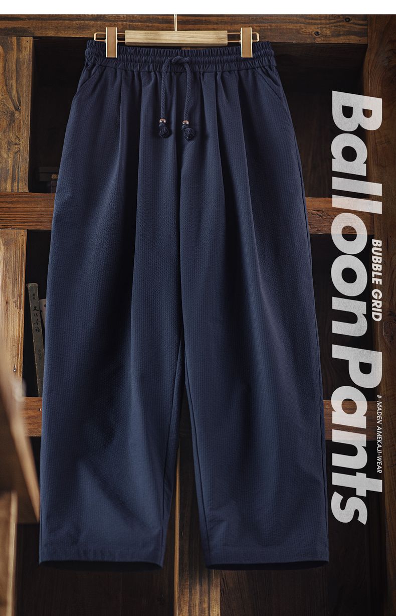 工装优选美式休闲束腰泡泡纱日系灯笼裤男宽松阔腿透气弯刀裤春夏