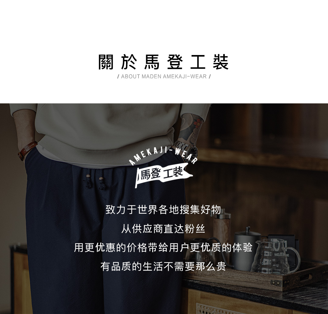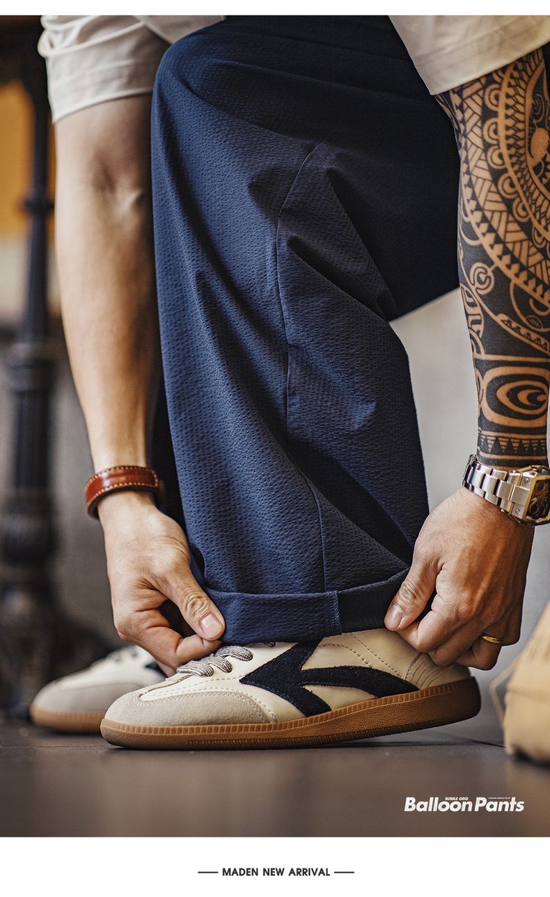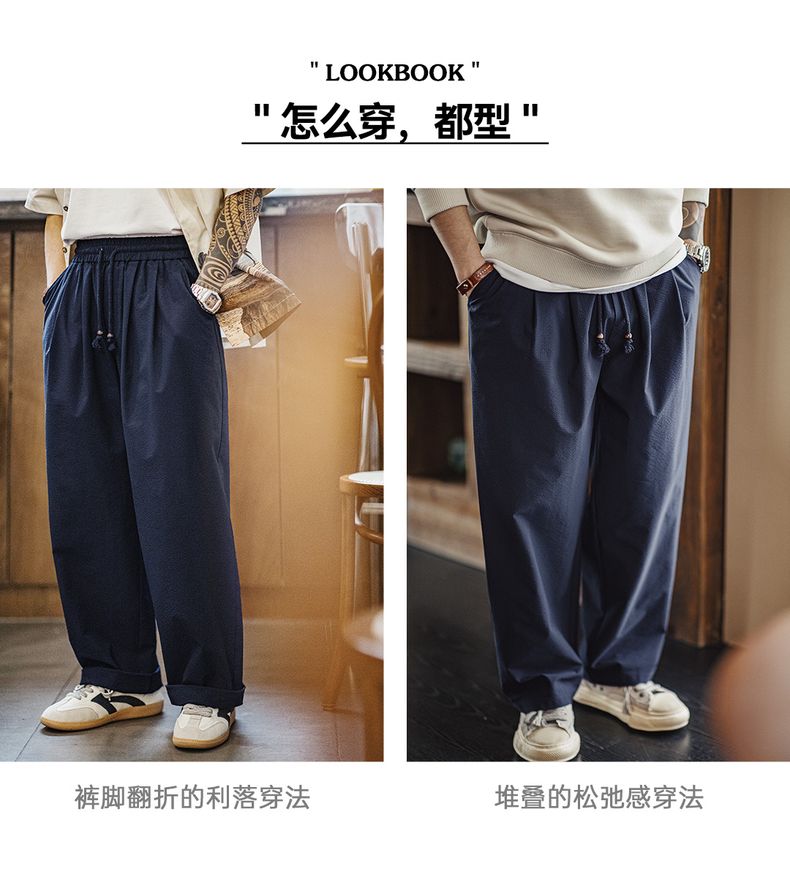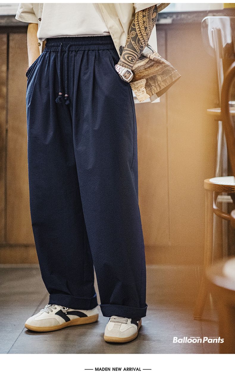 工装优选美式休闲束腰泡泡纱日系灯笼裤男宽松阔腿透气弯刀裤春夏