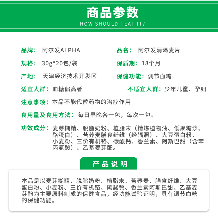 阿尔发 消渴麦片冲泡即食麦香浓郁冲饮糖友调糖早餐代餐食品