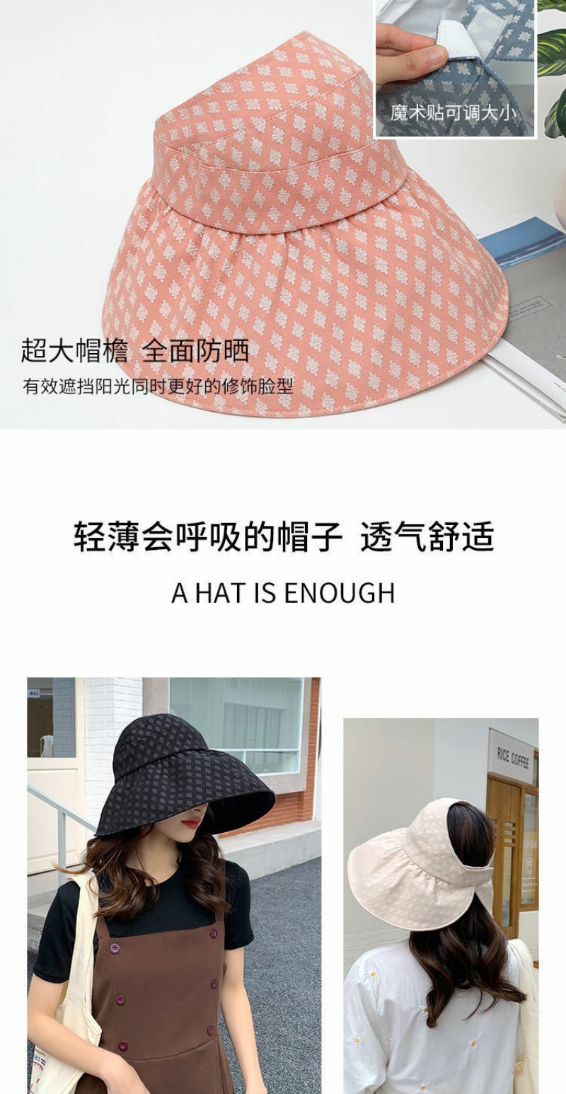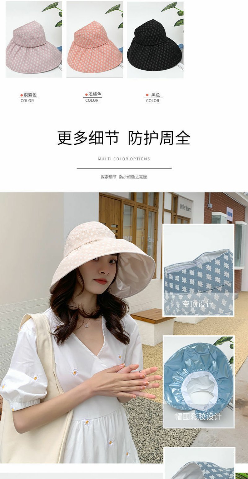 空顶帽女夏防紫外线可折叠遮阳防晒帽大帽檐黑胶遮脸全遮光太阳帽
