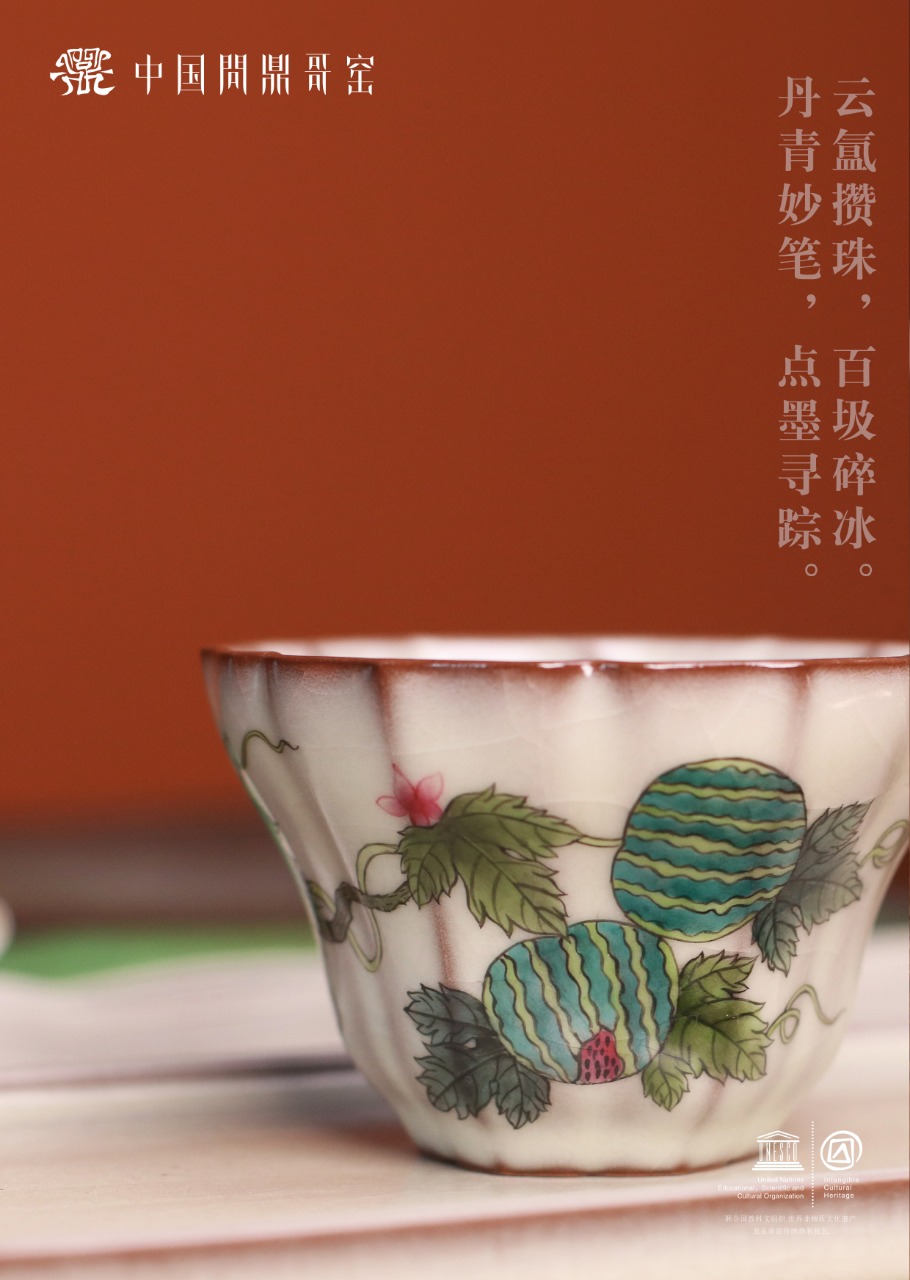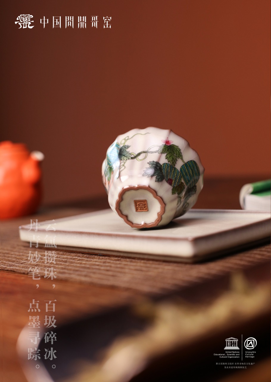 问鼎哥窑致巧款瓜棱杯(壁蔓玉团)(缺货)