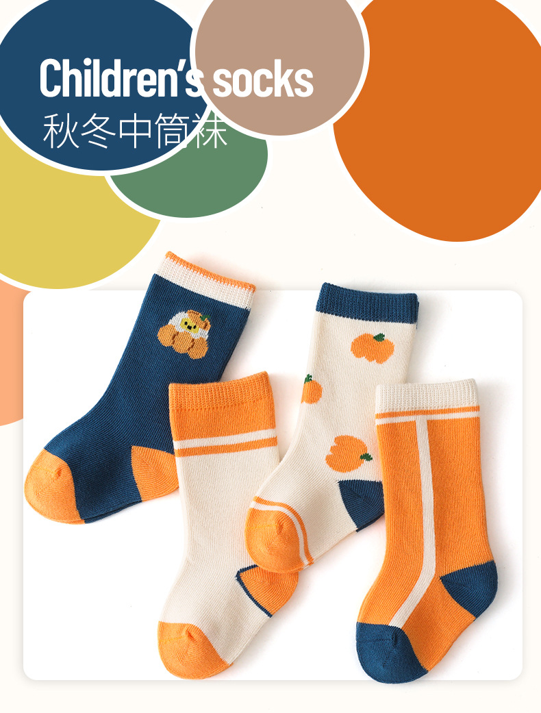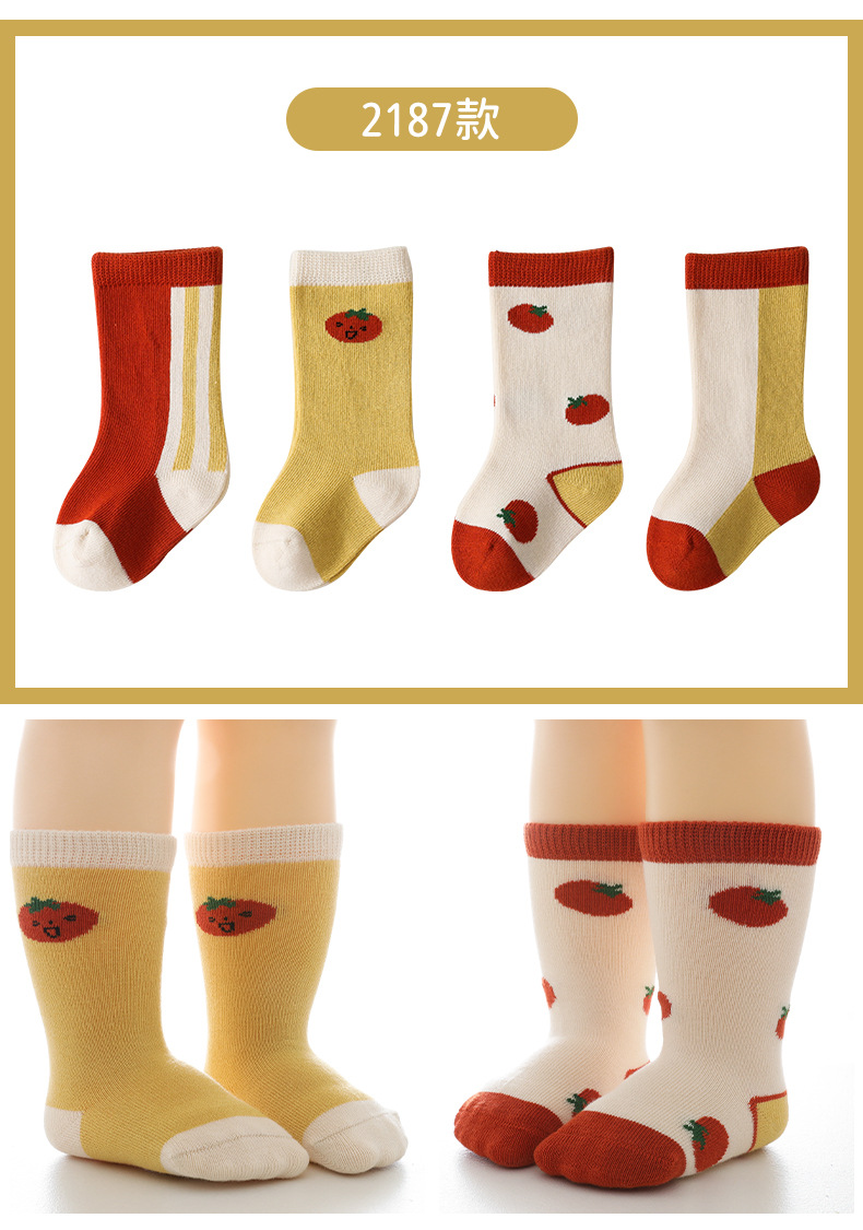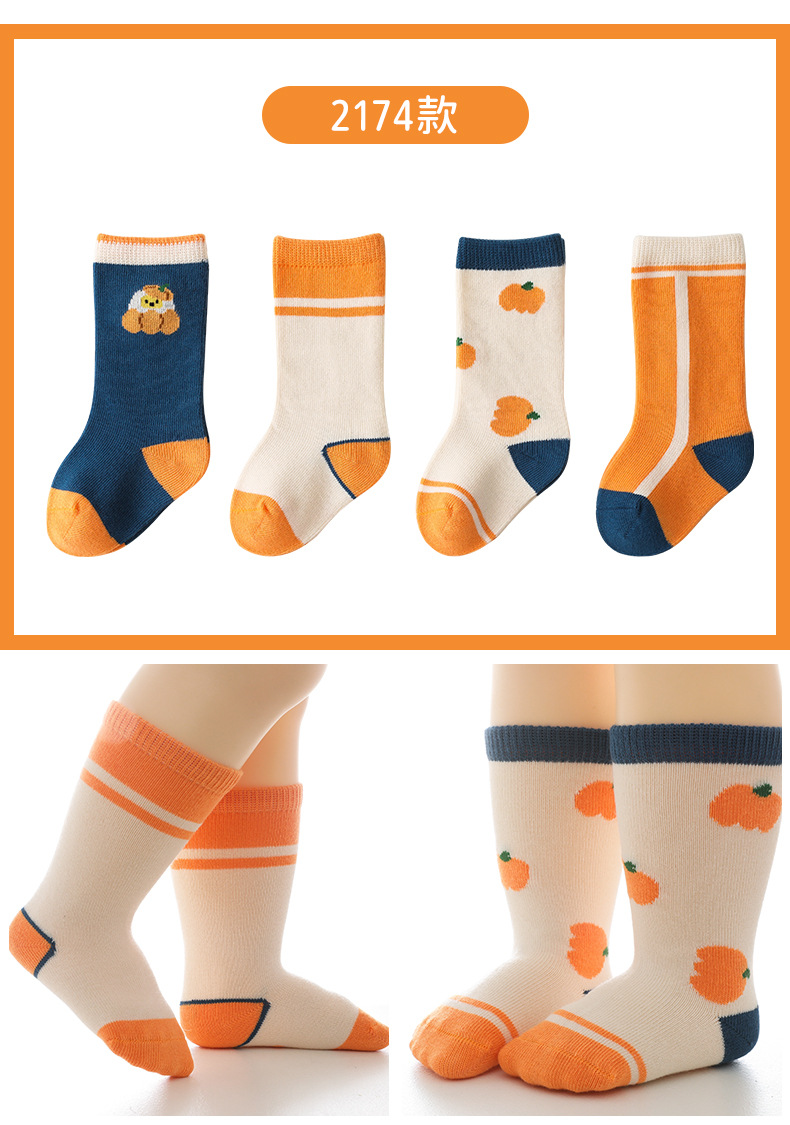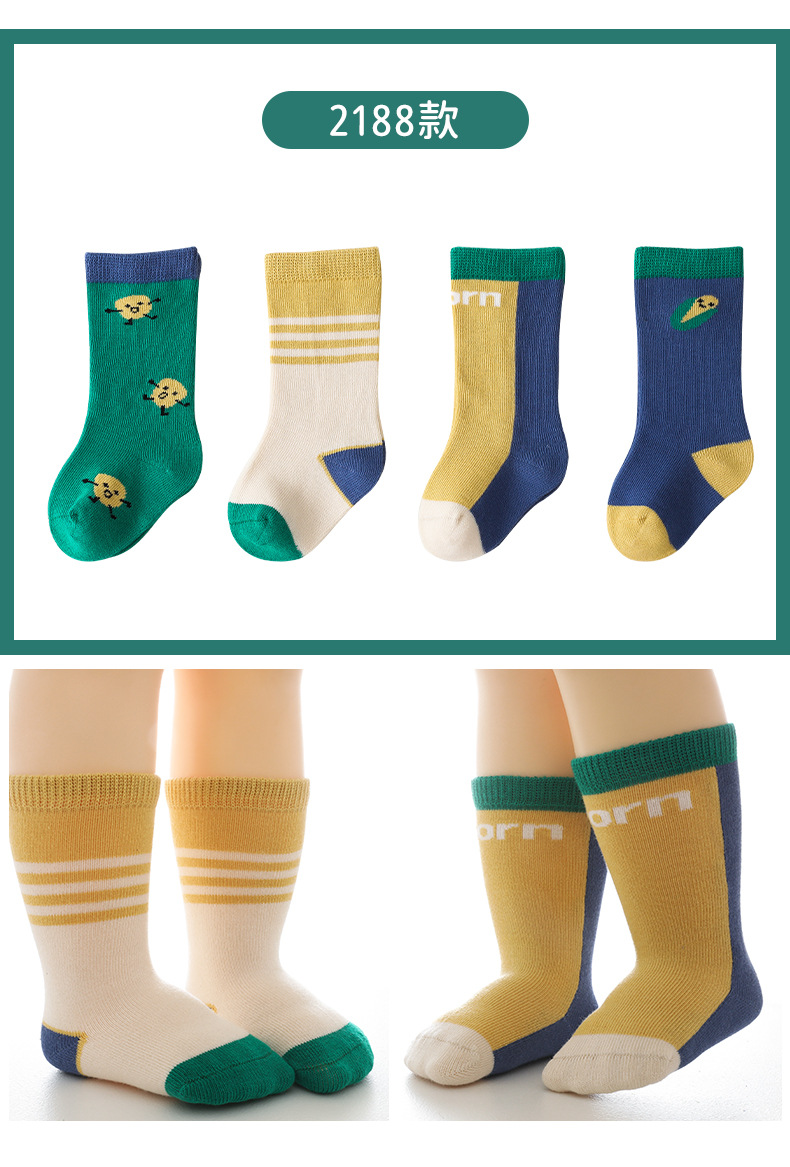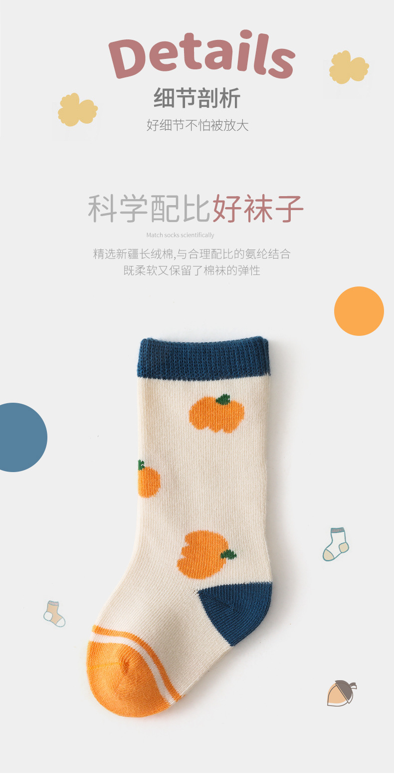 【会呼吸的健康优质棉】婴儿袜子秋冬新款卡通拼色儿童袜子 韩版男女新生儿宝宝中筒袜子