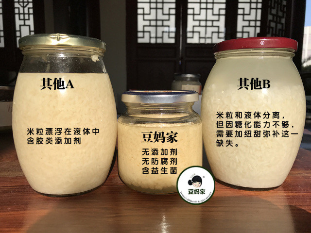 它采用的是单罐无菌发酵,无添加、无防腐剂,拒绝“大锅饭”似的发酵形式,让每一瓶甜酒都保留完整的发酵形态。每一个消毒后的无菌玻璃罐就是一个单独的“发酵室”,拒绝仓储式发酵后添加调味剂,水等物质二次装罐后销售。▼