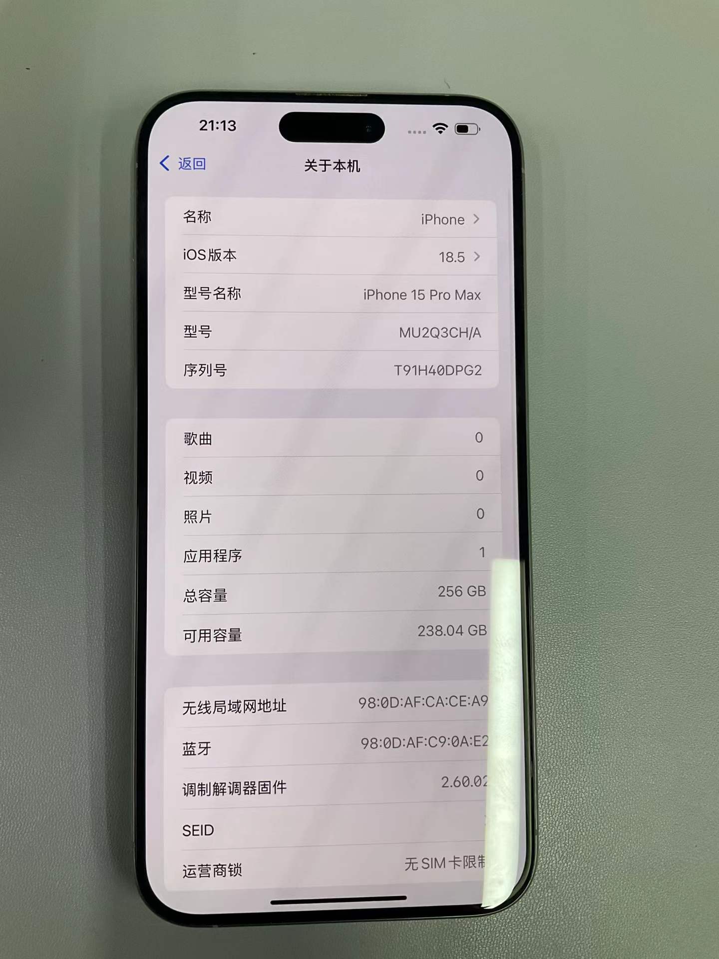 苹果15pro Max 256G 原色